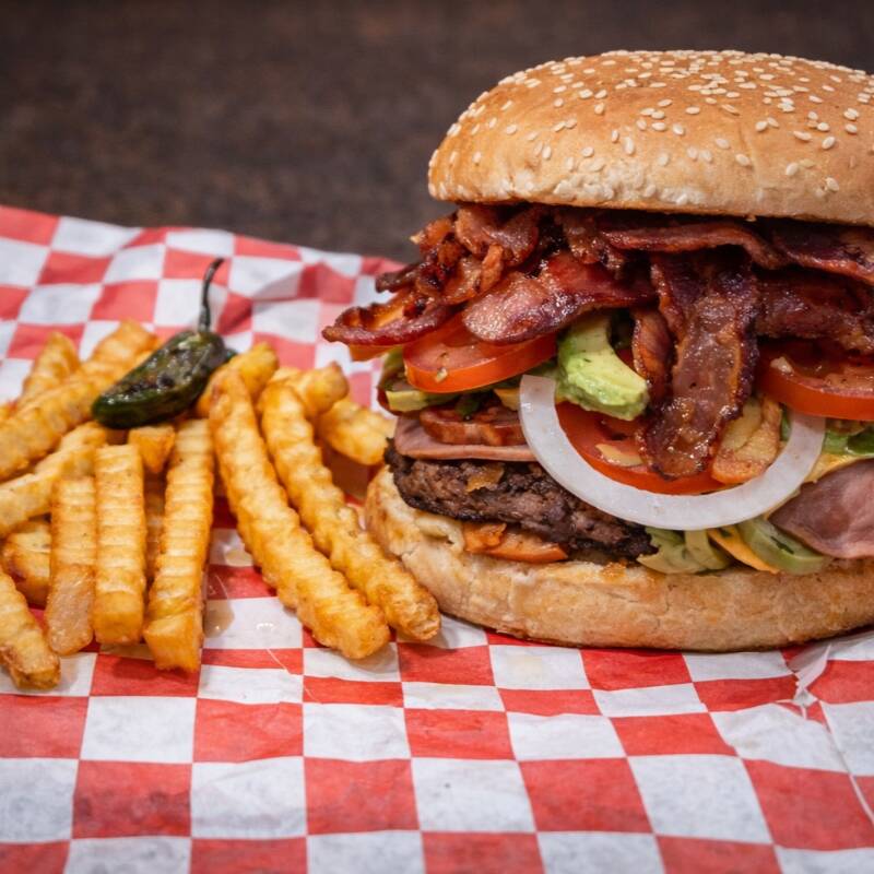 Hamburguesa clásica con crujiente tocino ahumado, queso derretido y un sabor tan poderoso como la criatura legendaria.