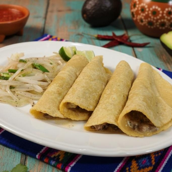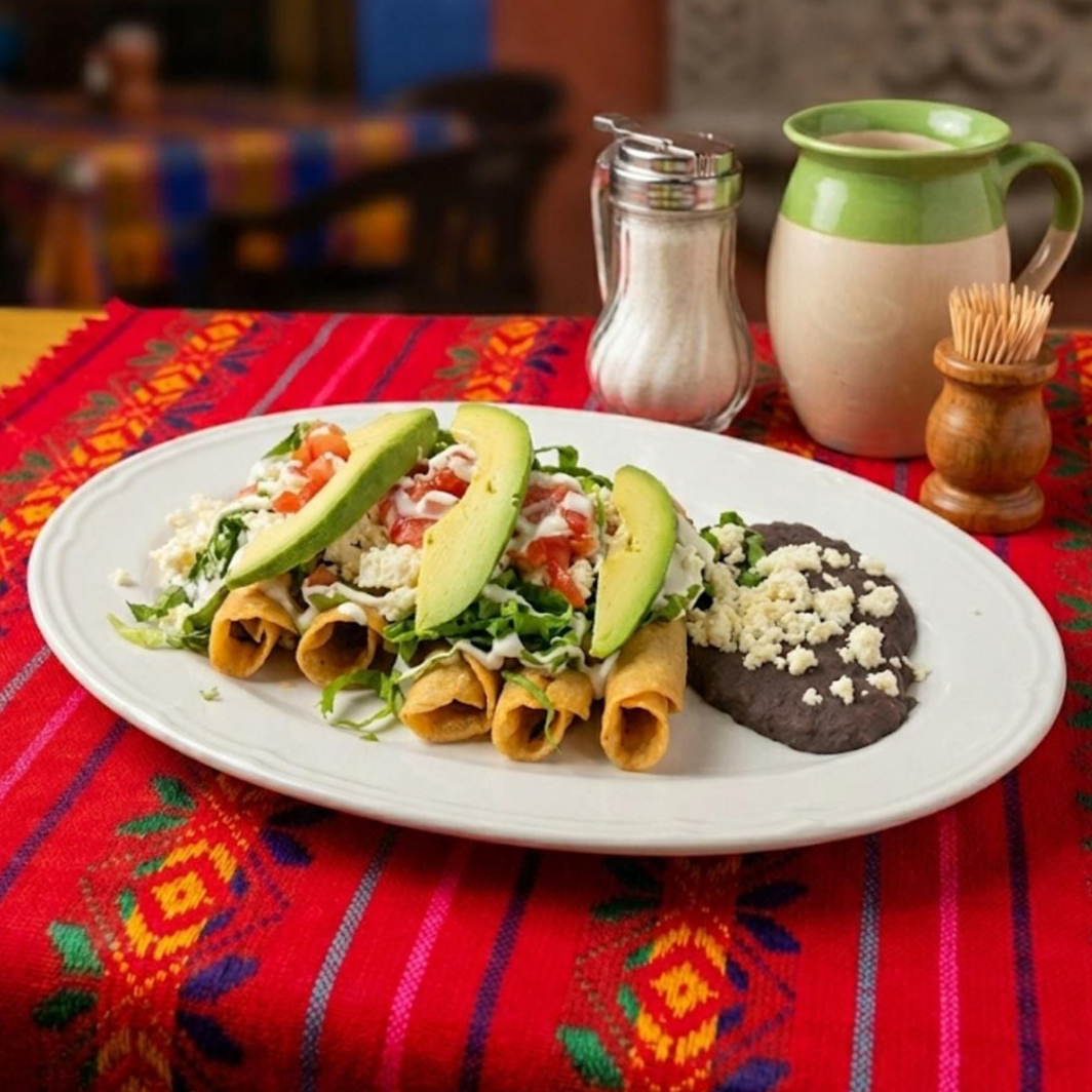 Flautas doradas y crujientes, rellenas al gust y servidas con lechuga fresca, crema, queso y aguacate 🥑🧀🥬. Un antojo mexicano lleno de sabor en cada bocado. 🌮✨