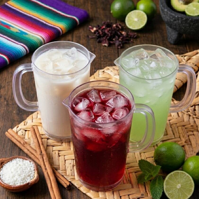 Aguas Frescas – Litro 🥤✨ Refrescante litro de agua de sabor preparada al momento, ideal para acompañar cualquier platillo. Disponible en tres deliciosas opciones tradicionales: 🌺 Jamaica 🥛 Horchata 🍋 Limón