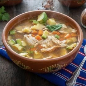 Caldo tlalpeño preparado con pollo desmenuzado, arroz, aguacate y cubos de queso con un toque de chipotle que le da su sabor característico 🐔🌶️🥕. Un platillo tradicional, reconfortante y lleno de auténtico sabor mexicano. 🍲✨