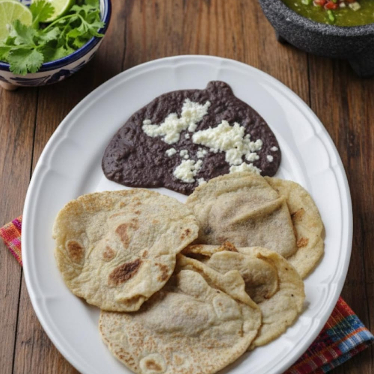 Empipianadas bañadas con salsa de pipián tradicional, servidas con aguacate, frijoles refritos y queso fresco espolvoreado. Un antojo típico con todo el sabor casero. 🌿🧀