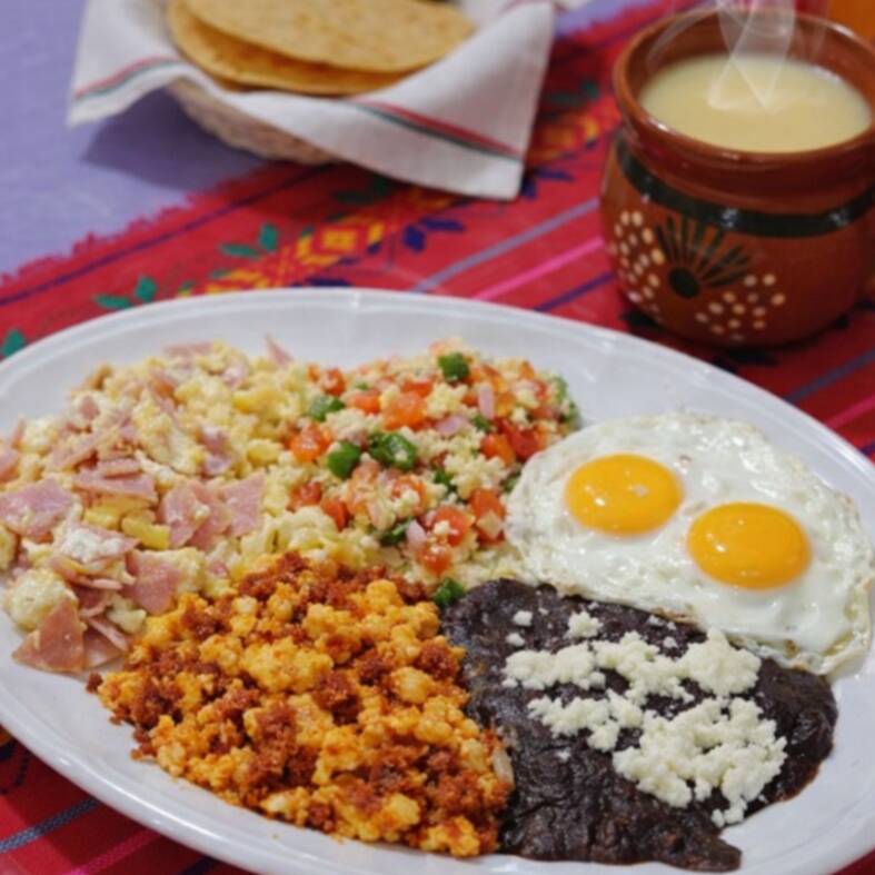 Huevos al gusto preparados al momento: con jamón, a la mexicana, con chorizo o estrellados, acompañados de frijoles refritos y tortillas recién hechas 🥚🌮🫘. Un desayuno tradicional, abundante y lleno de sabor casero. ✨