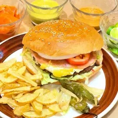 Hamburguesa de Res con Tocino y Queso Asadero.