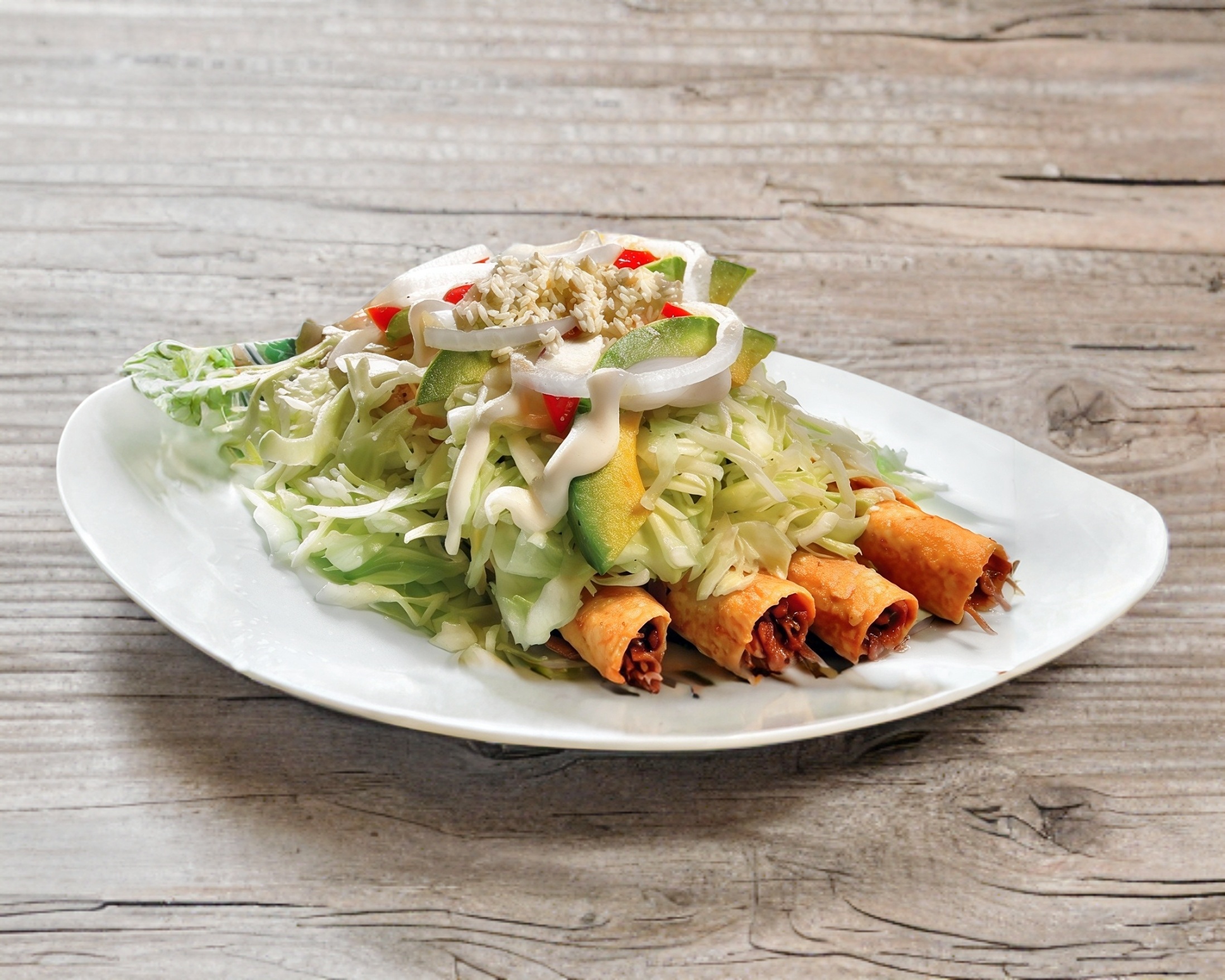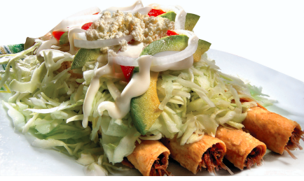 Carne deshebrada de res, tomate, aguacate, crema y queso molido fresco.