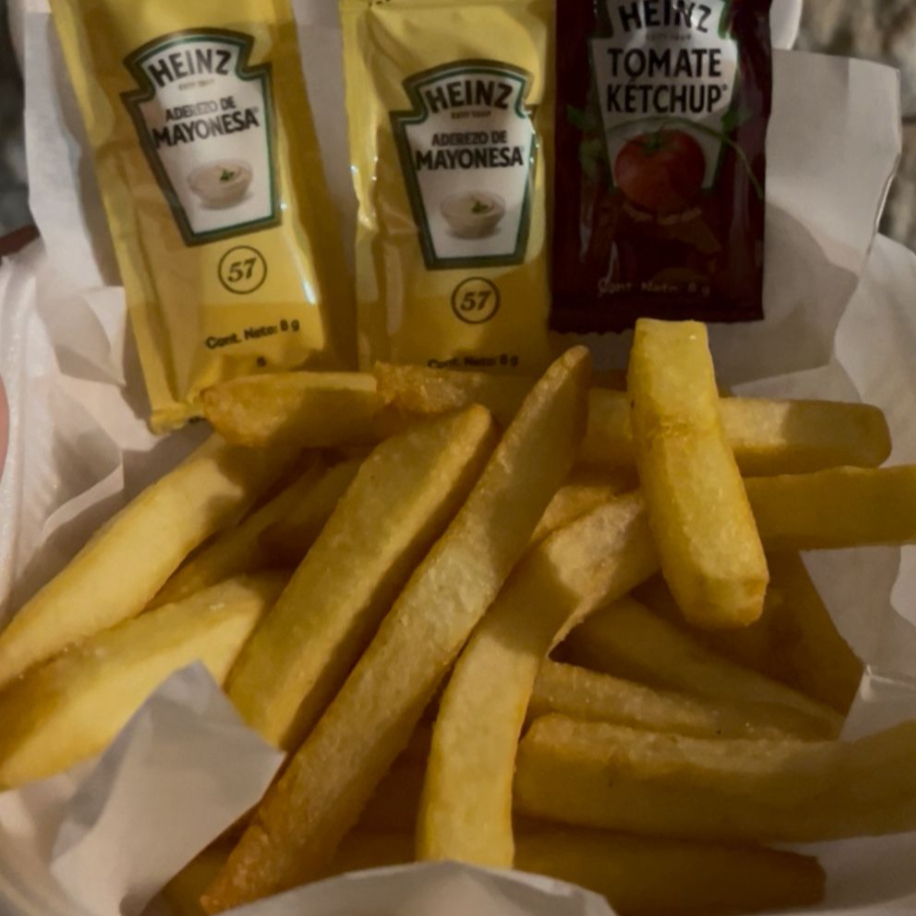 PAPA FRANCESA 300 GR / ADEREZO / SALSA DE QUESO / TOCINO