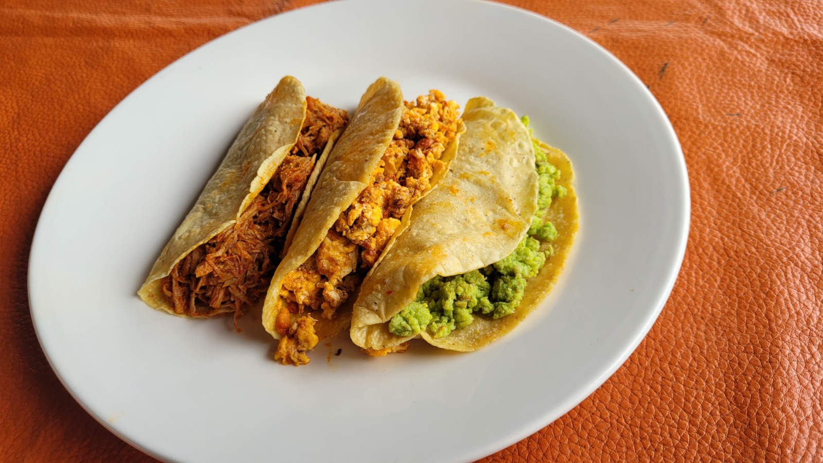 Tacos de torilla de maiz recien hecha. Guiso a escoger