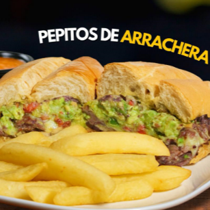 Delicioso pan con frijoles, refritos, relleno de Arrachera, queso fundido y guacamole. Acompañado de papas a la francesa