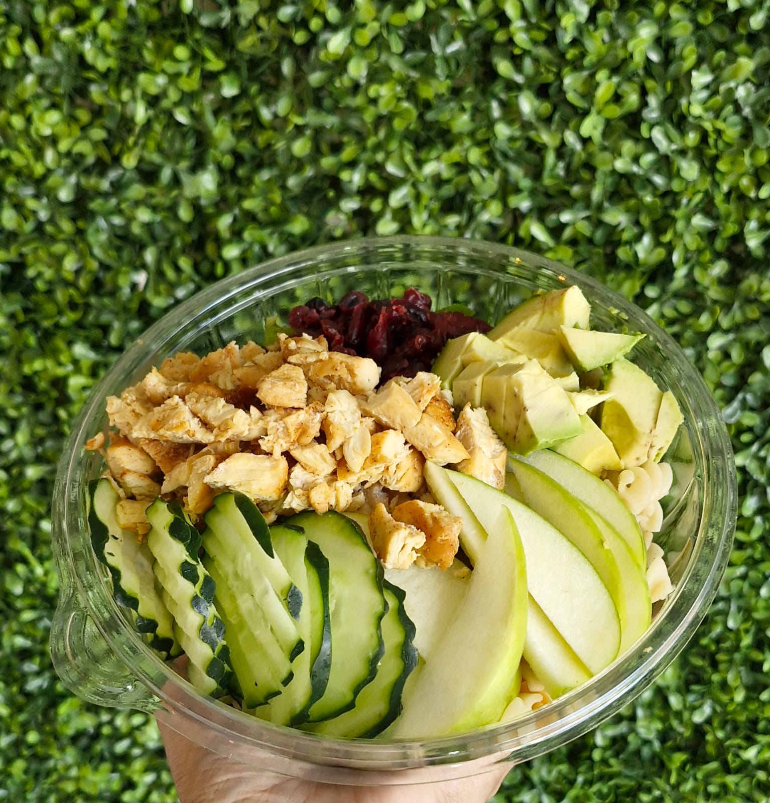 Deliciosa ensalada de pollo con uvas, manzana, arándanos y nuestro exquisito aderezo lemoned.