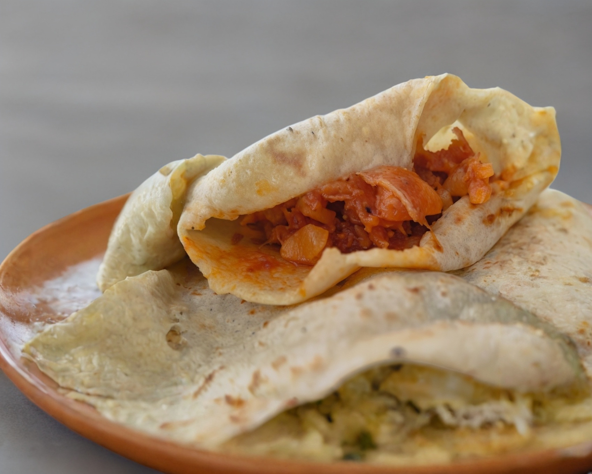 5 pz quesadillas acompañadas con frijoles refritos y lechuga