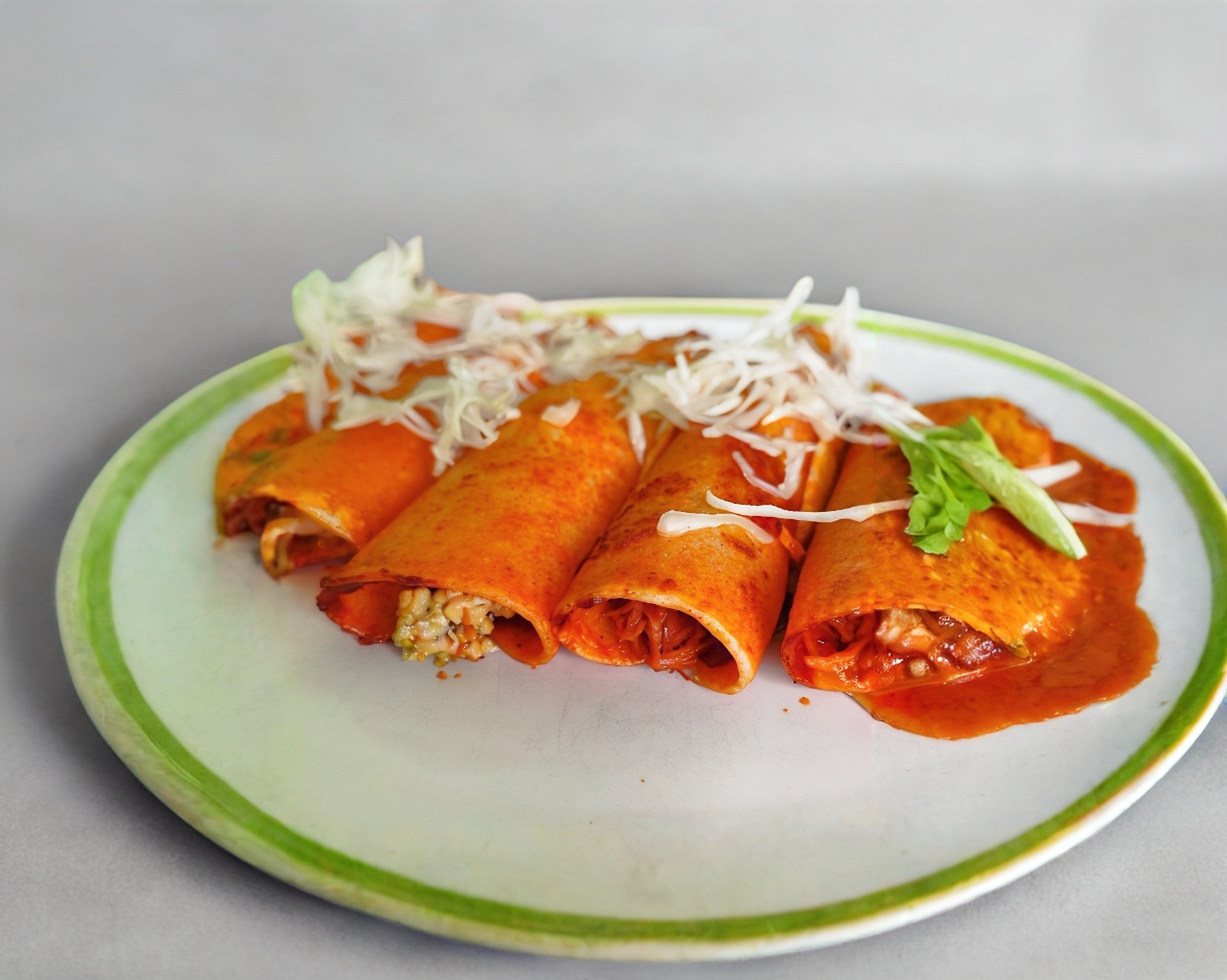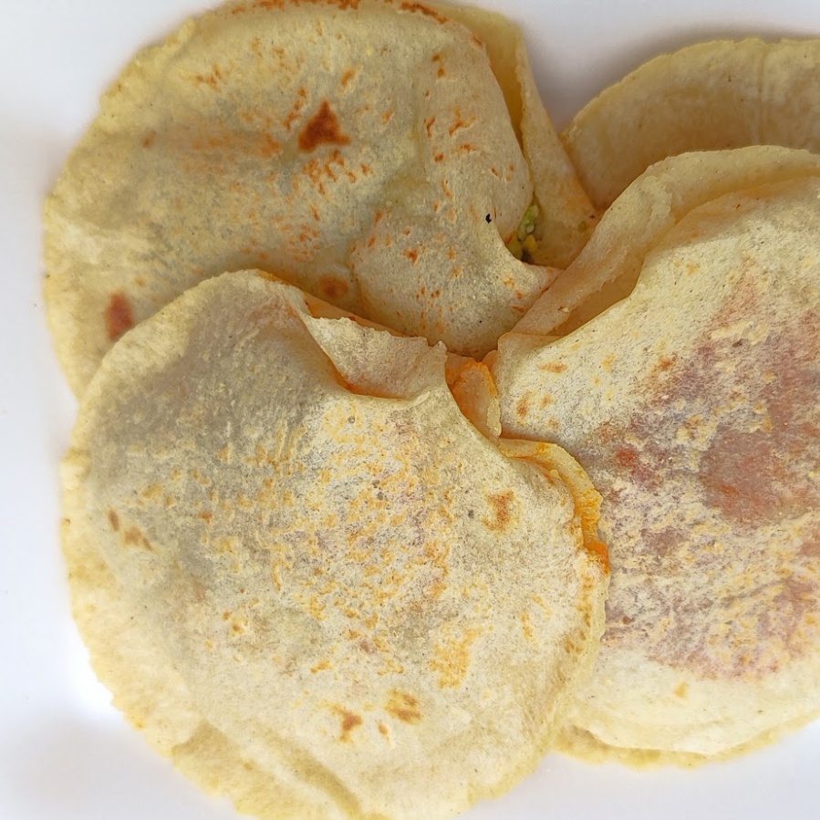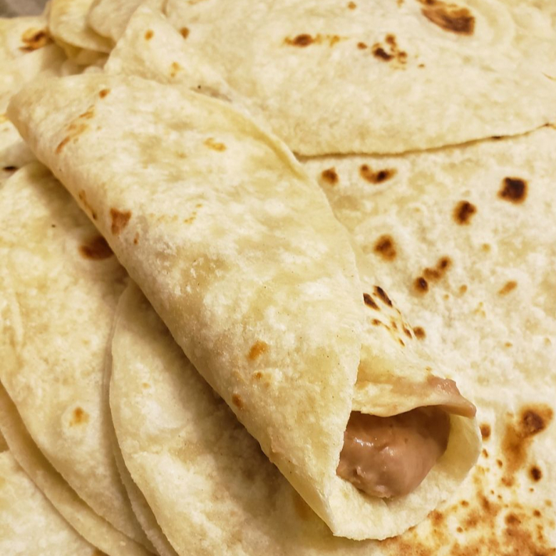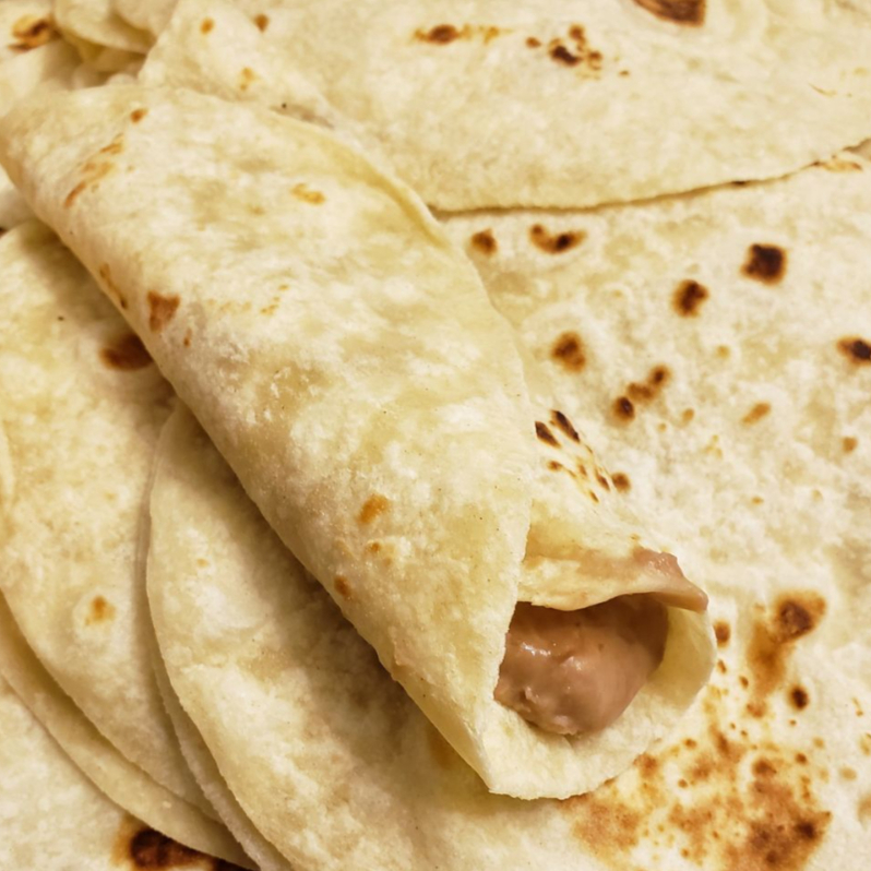 5 pzs base frijol, carne deshebrada, lechuga, tomate, cebolla, queso, crema