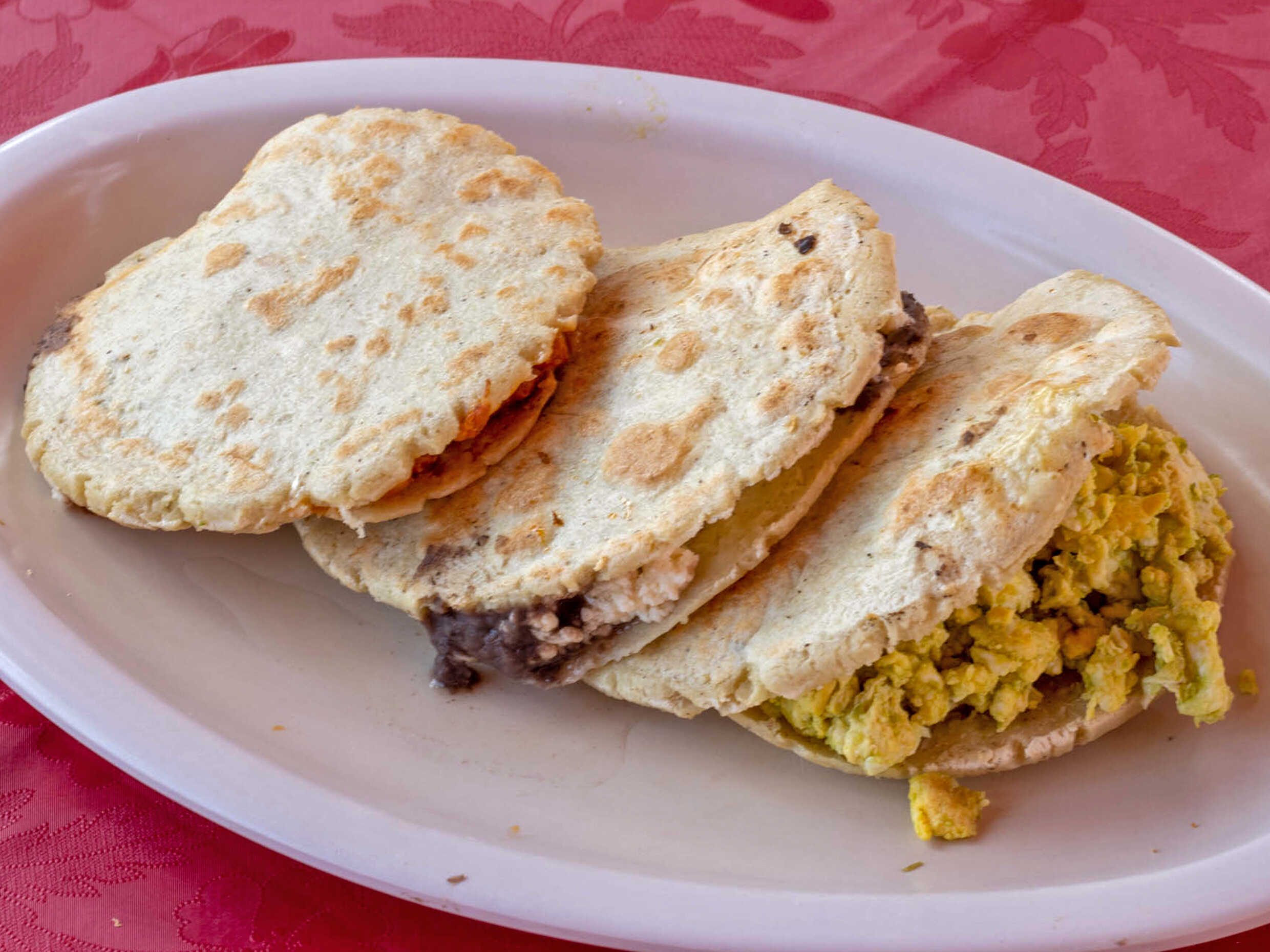 Rojos, coronados con un huevo estrellado. Acompañados de frijolitos con queso.