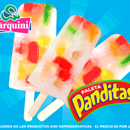 Paleta con base de agua y fruta natural, rellena de Panditas.