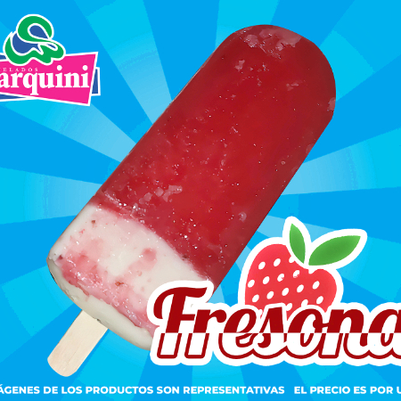 Paleta premium de leche-crema con doble fresa, vainilla blanca suave y fresa.