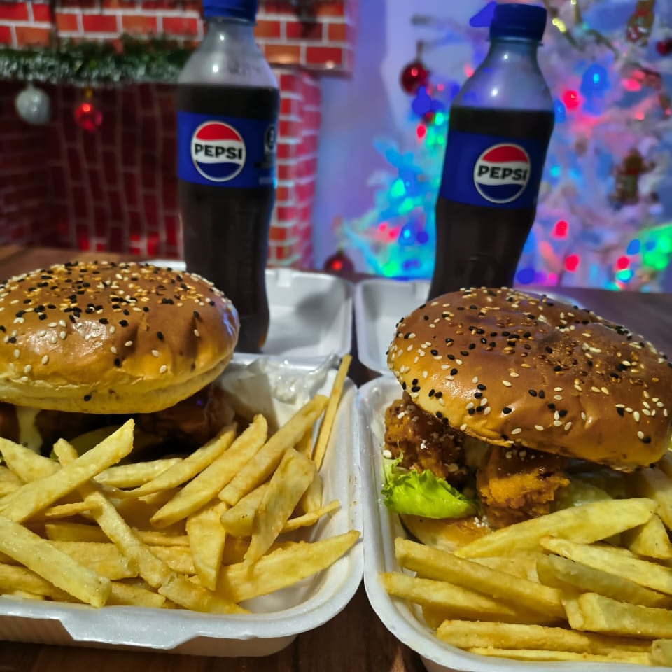 1 Hamburguesa de boneless, 1 orden de papas a la francesa y 1 refresco Pepsi 600 ml.