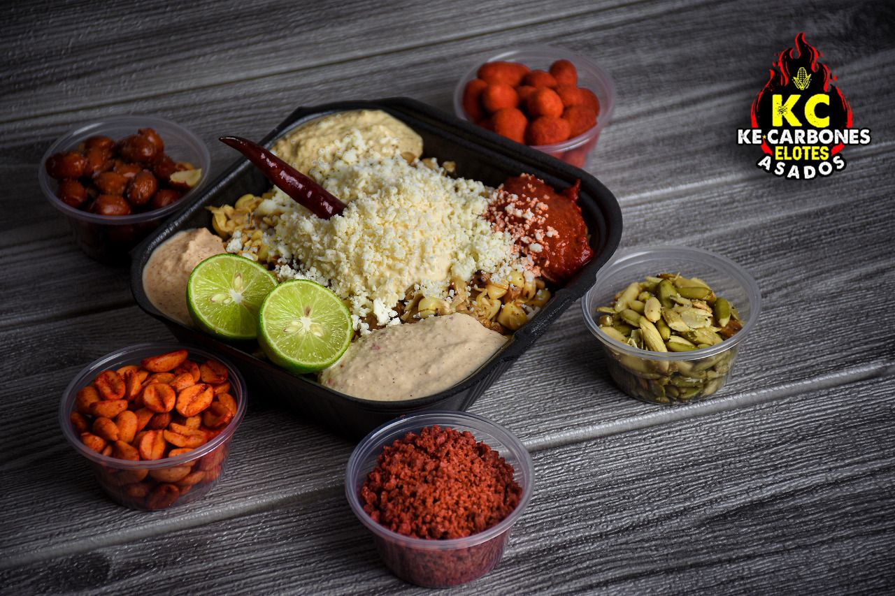 Limón, sal, mayonesa, queso, mantequilla, chile de árbol y salsas a elegir.