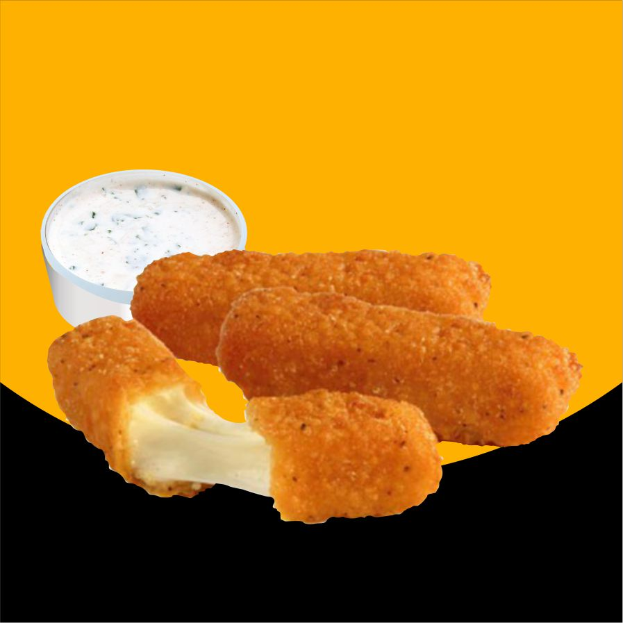 Dedos rellenos de queso acompañados de aderezo ranch.