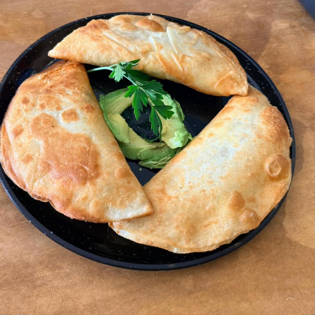 Camarón, calamar, pescado de trucha, pulpa de jaiba, combinación de quesos y especias