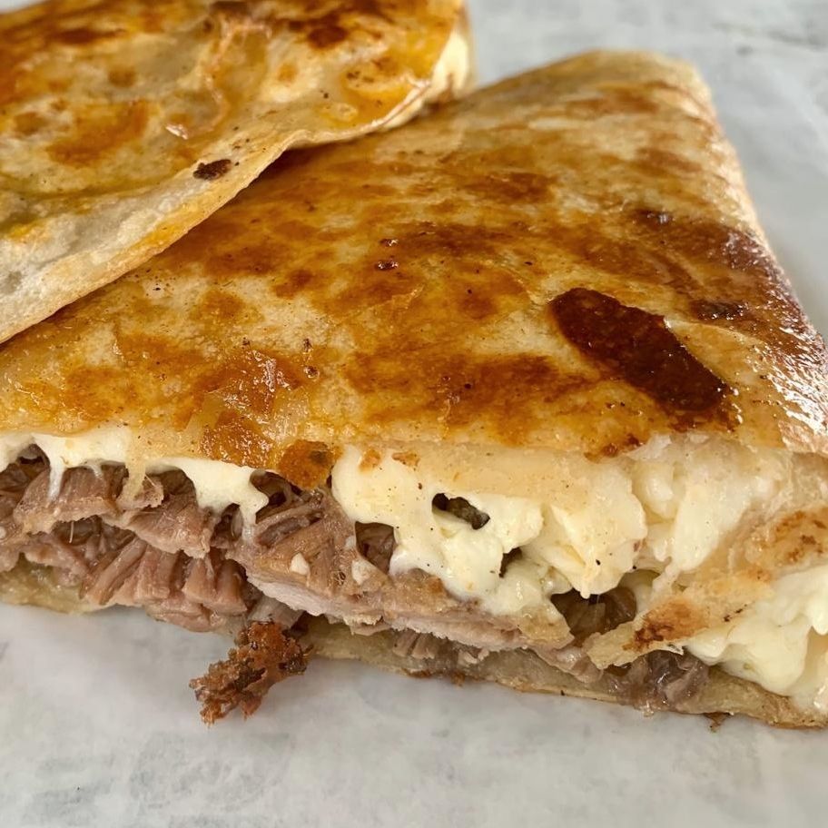 Quesabirria (Tortilla de Harina 25-28 cm)*2 + 1/2 de Puro Consome Sin Carne*1