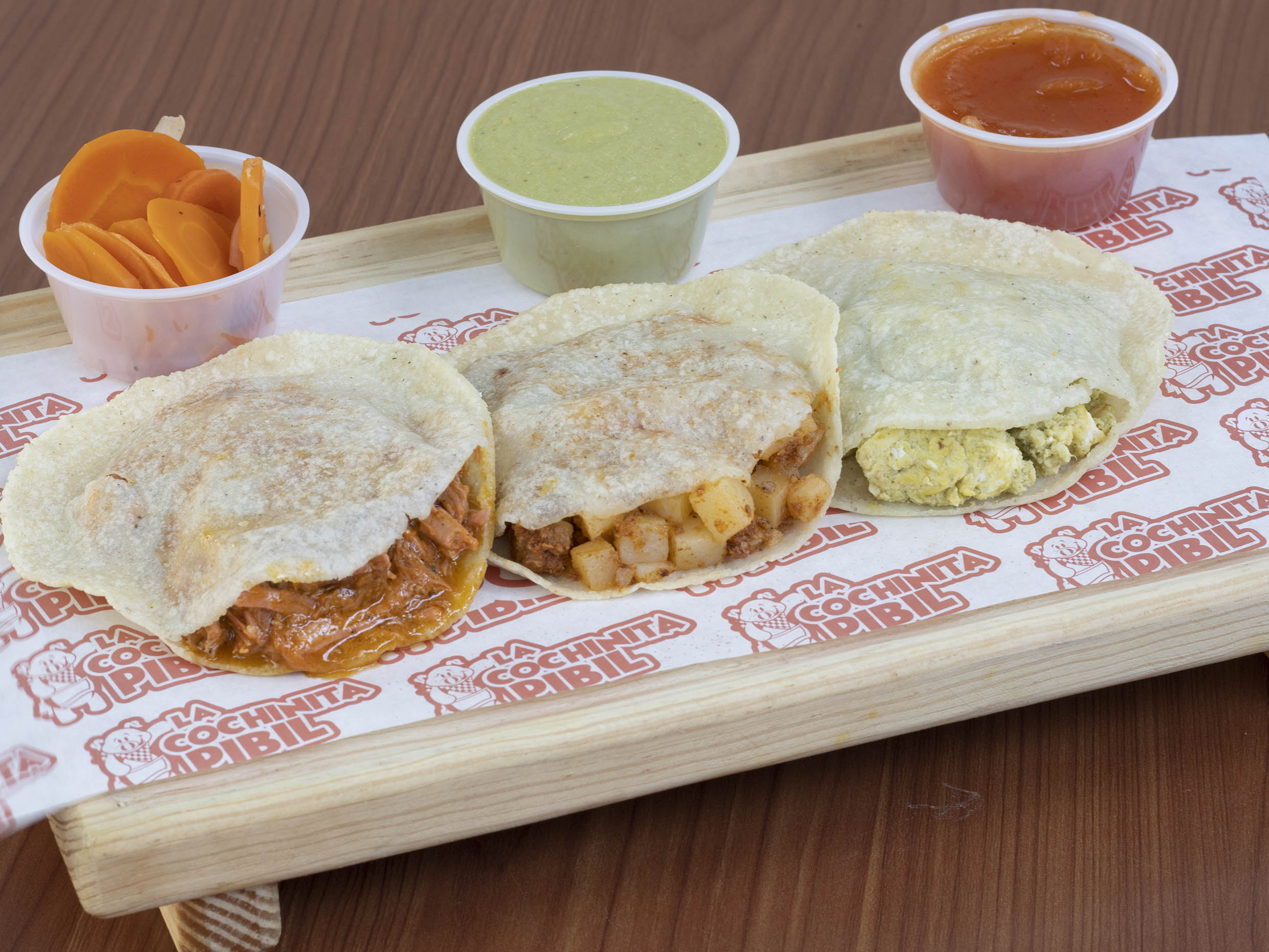 Tacos en tortilla recién hecha selecciona tu guiso.