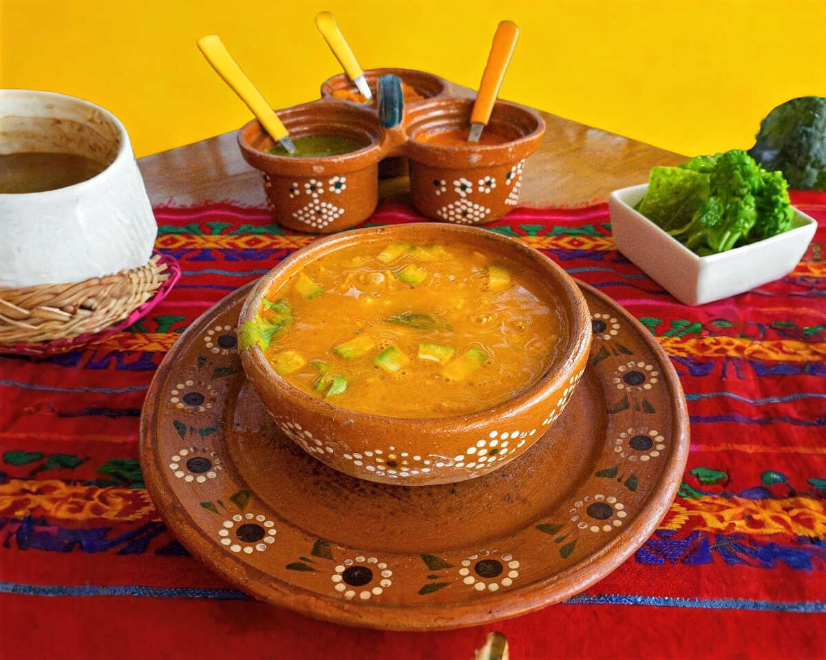 Suaves tiras de Cecina mezcladas con vegetales, salsa de tomate, con picor a elegir, montadas sobre tortilla grande de comal, acompañada de frijoles de olla, con una mezcla de aguacate, queso panela y nopal asado, crema de rancho y tortillas de comal.