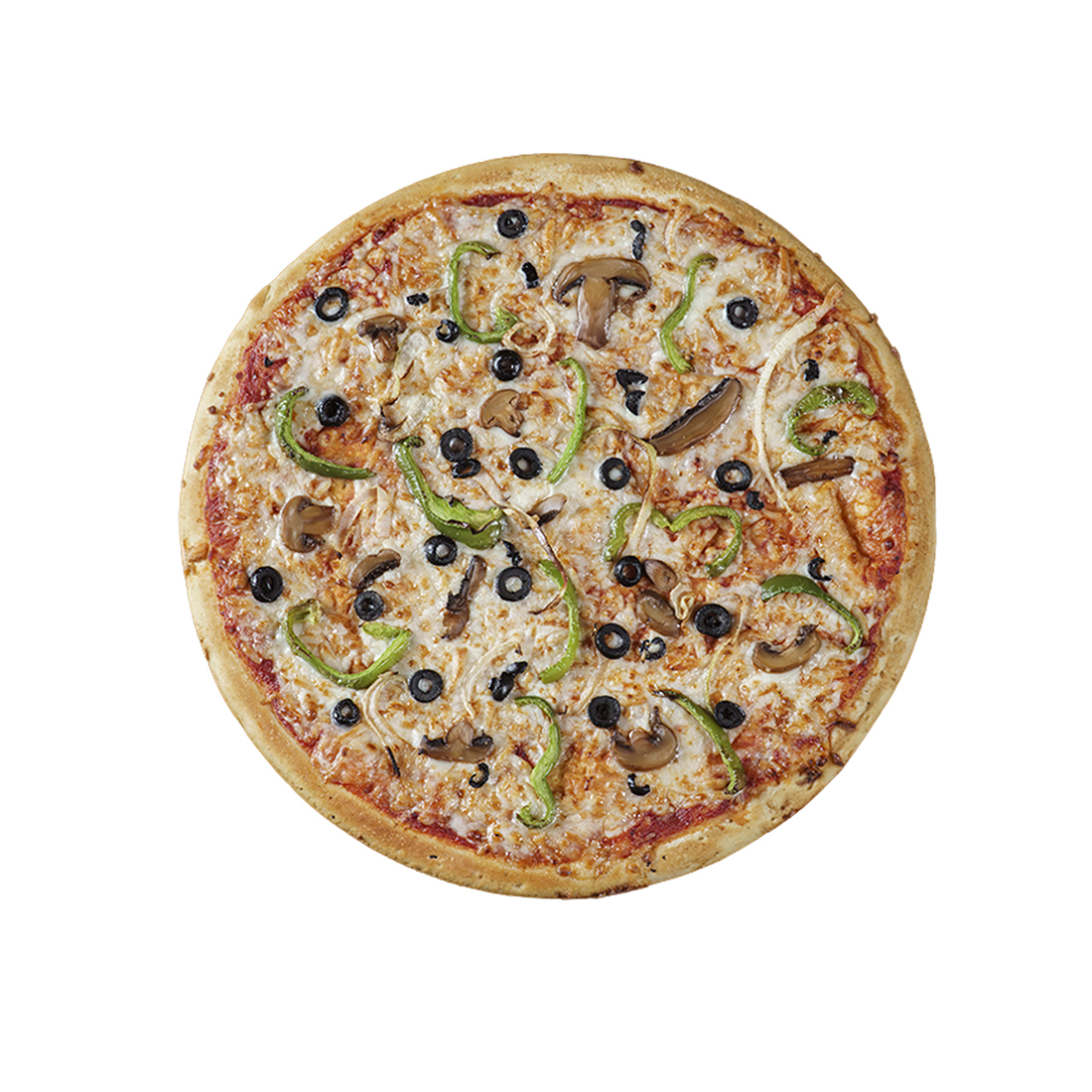 champiñones, cebolla, pimiento verde, aceituna negra.