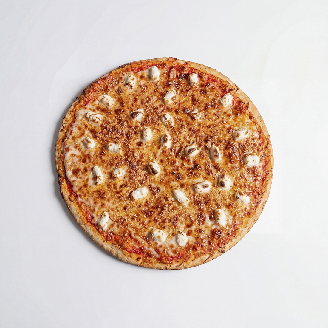 Pizza de 4 quesos, rellena de philadelphia y cubierta con manchego
