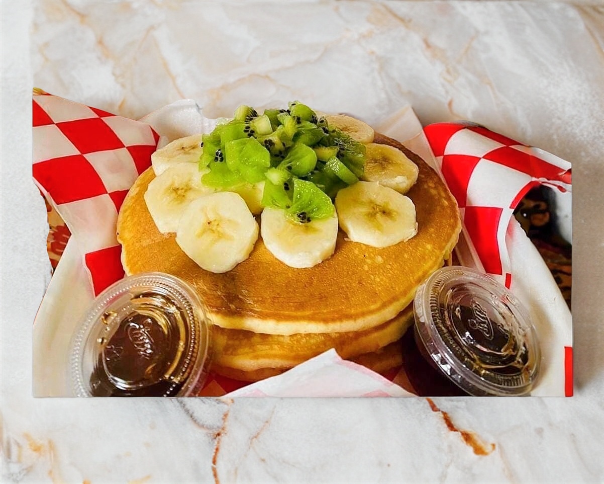 3 Hotcakes medianos con cobertura.PUEDES AGREGAR UN MENSAJE ESCRITO EN EL PLATO. * FOTO DE REFERENCIA *