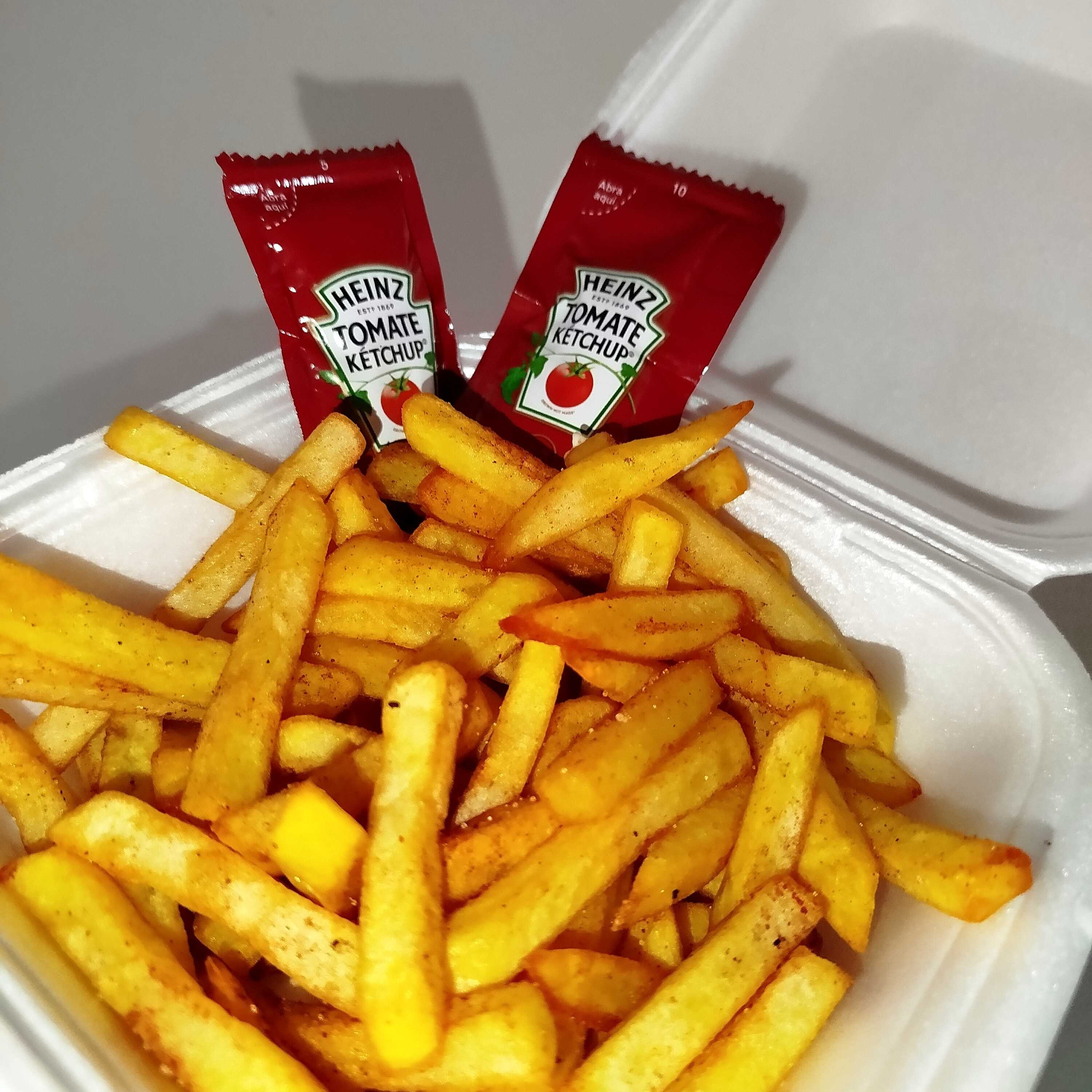 Papas a la francesa corte delgado sazonadas con condimentos de la casa