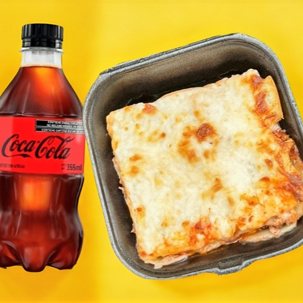 Rebanada de Lasaña de especialidad Acompañada de Una coca cola S/A 355ml, Deli para apetitos Relax.