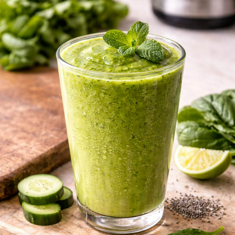 Refrescante Y Saludable Licuado Verde, incluye Pepino, Apio , Nopal , Piña, Espinaca