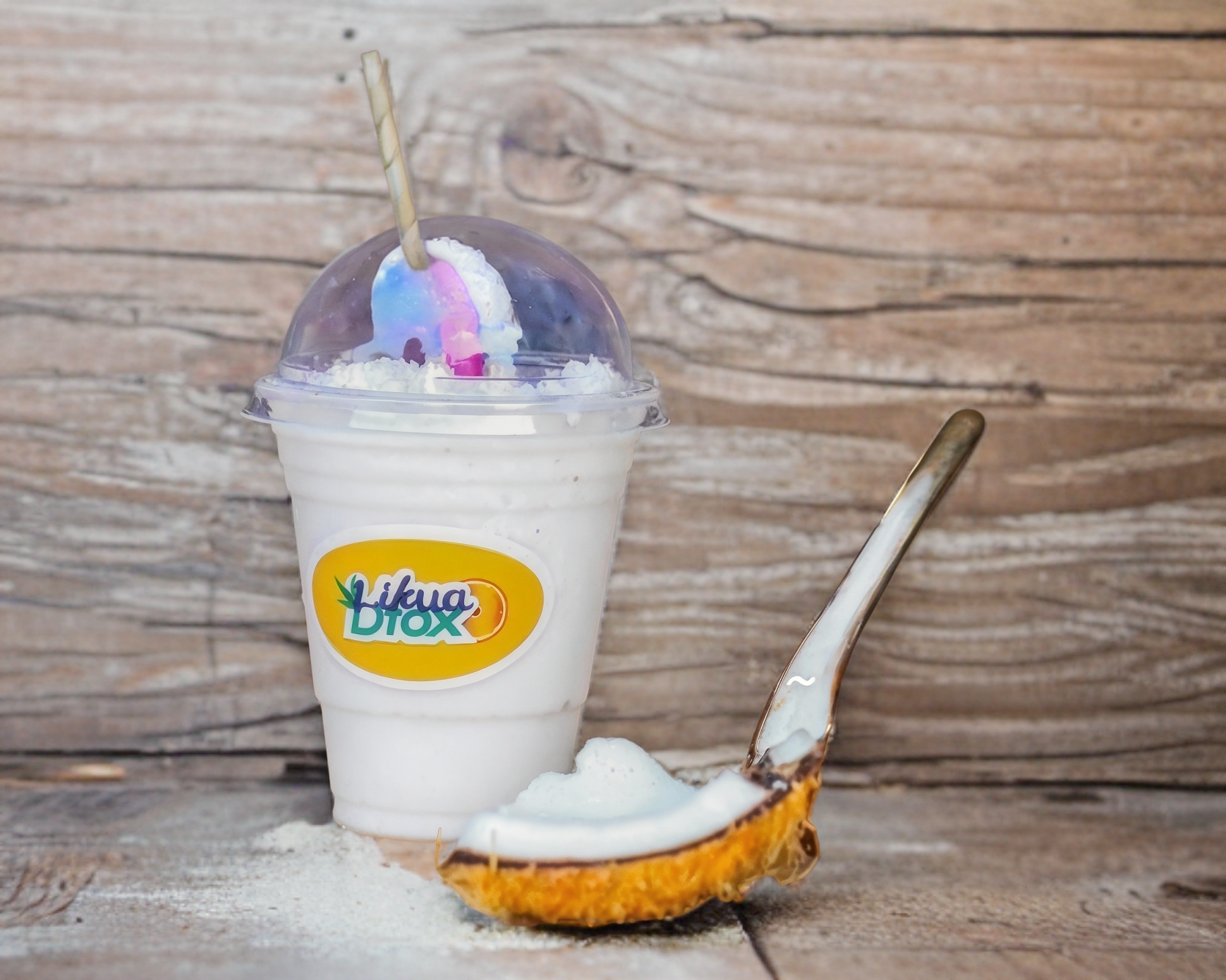 Fibra y vitalidad hidratante. Hecha con trozos de coco, agua de coco natural con azucar mascabado frappeado.