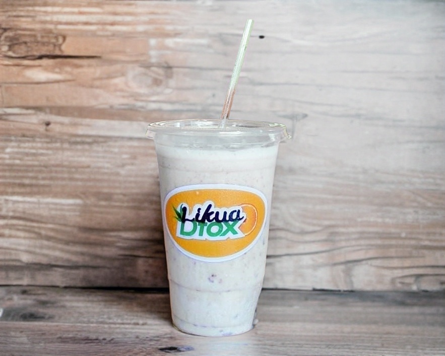 Rico en fibra y buen digestivo. Arandanos, platanos, leche de coco, manzana y avena.