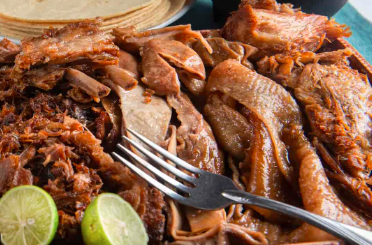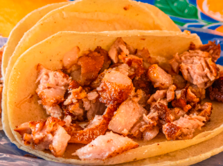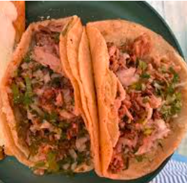 250 g De buche suave y bien sazonado. Incluye: tortillas, limones, cilantro, cebolla, salsa de árbol, salsa verde, cebollitas con habanero y pico de gallo.