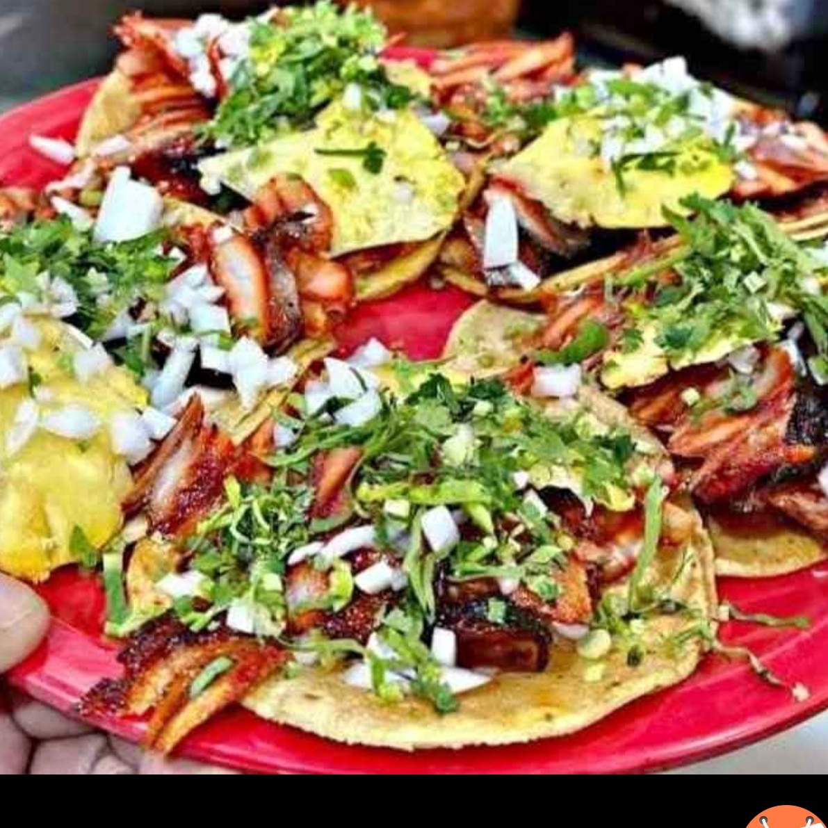 Lleva cecina y pastor además de cebolla, cilantro, aguacate, crema y papas fritas