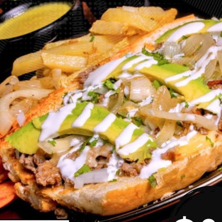 Lleva cebolla, cilantro, aguacate, crema y papas fritas
