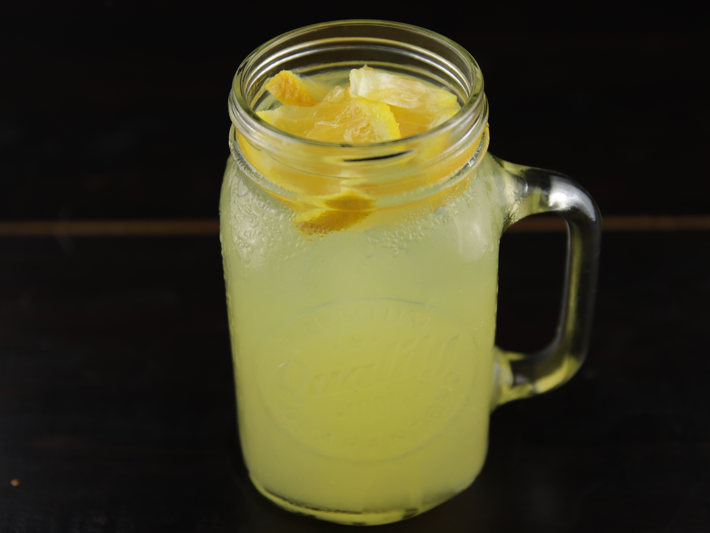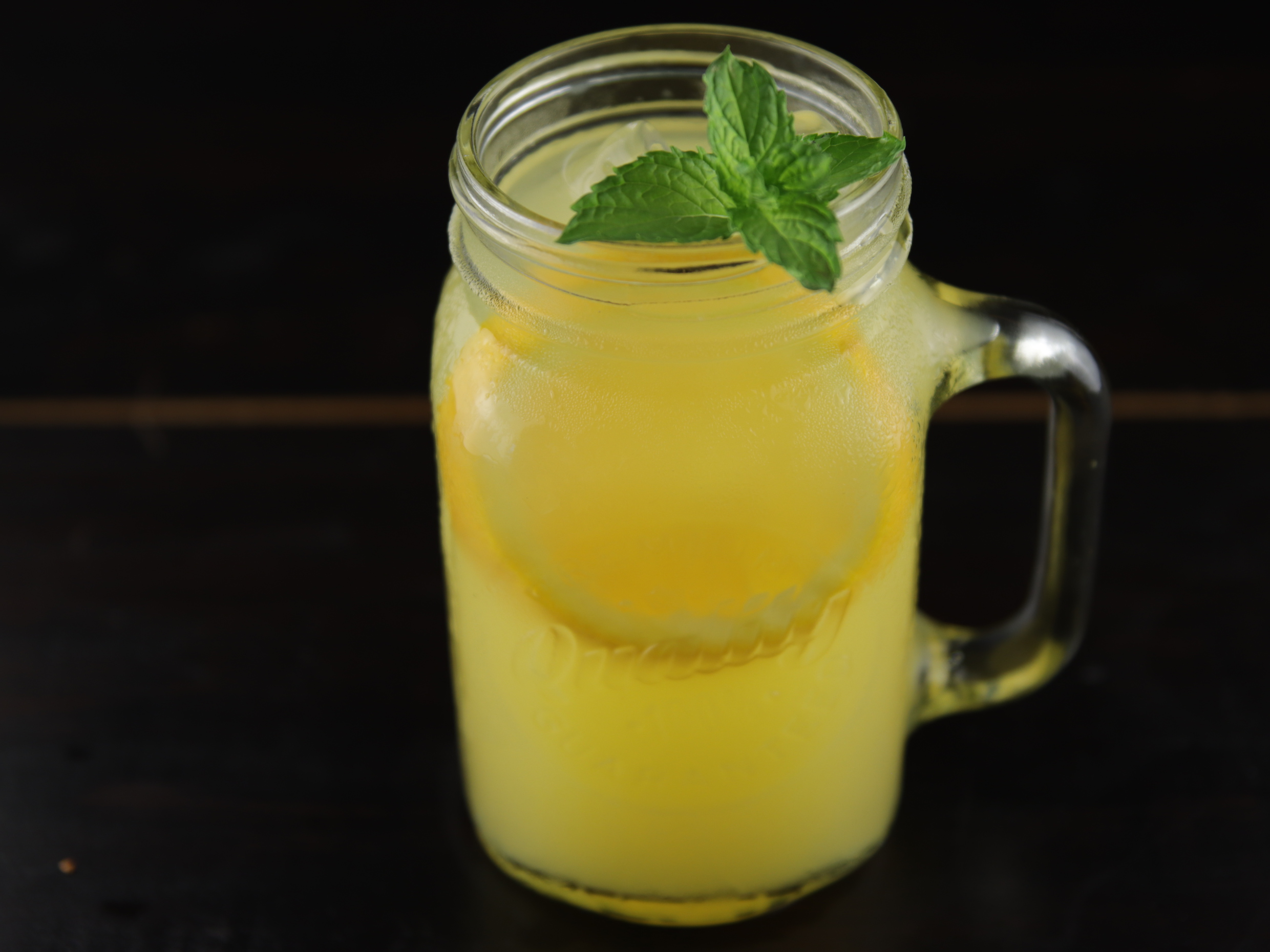 Postre helado con sabor cítrico, acompañado de cocoa, chocolate y fresa