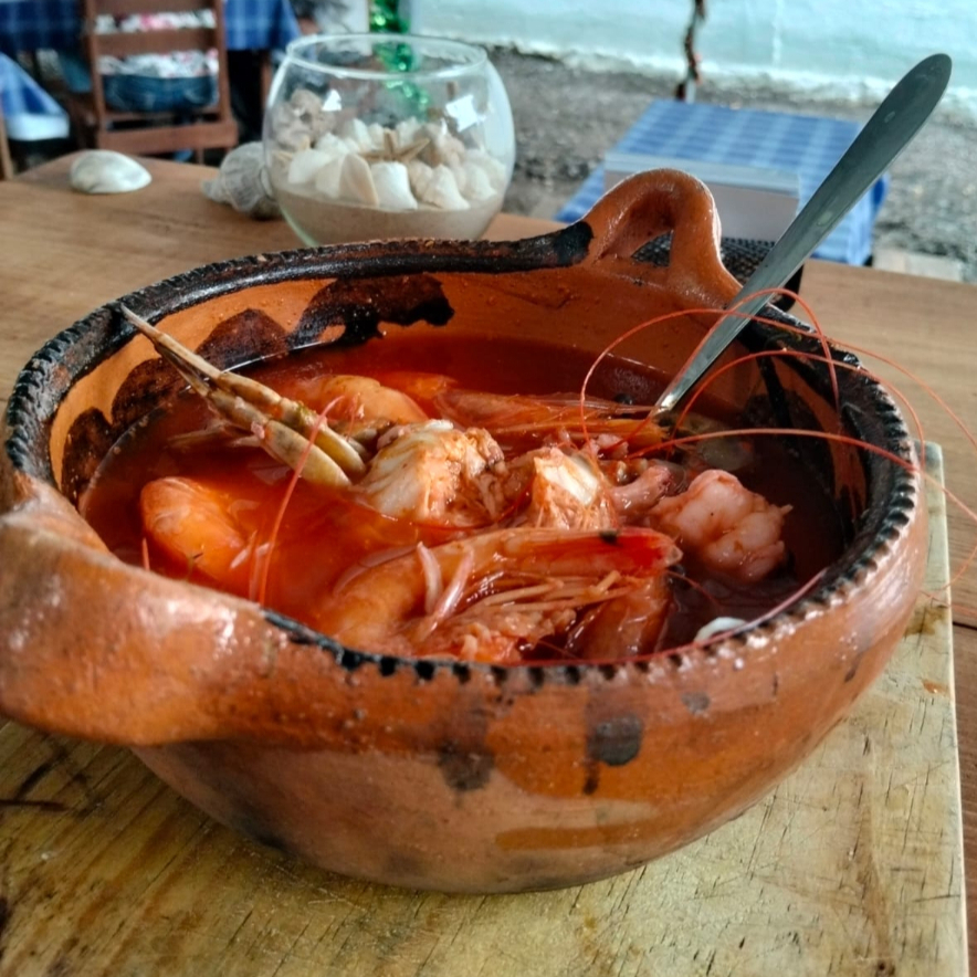 1 Litro de sopa de mariscos que se prepara con camarón con cascara, camarón coctelero, pulpa de jaiba, filete de pescado y jaiba, incluye complementos: limón, salsa pulpito, totopos y arroz a la jardinera