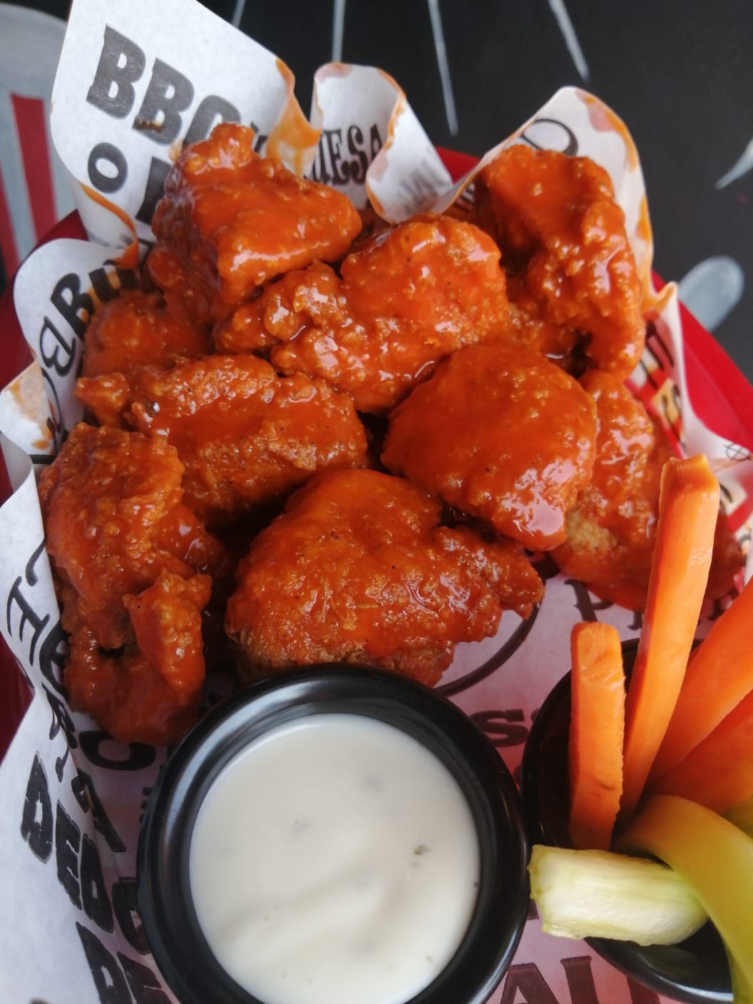 18 Deliciosos boneless acompañados con Apio, zanahoria y Aderezo ranch