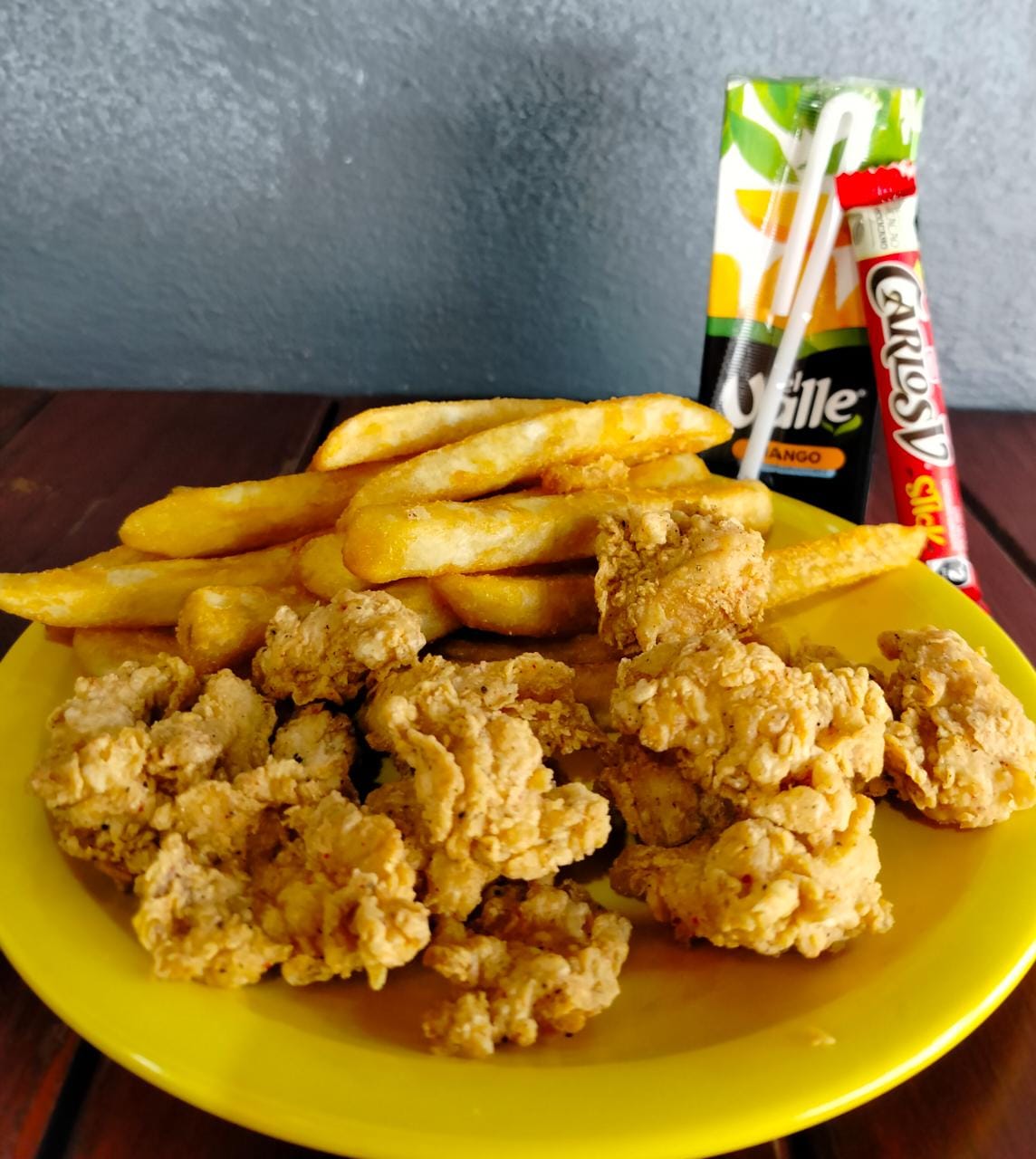 Incluye Palomitas de pollo, Papas fritas, Jugo y Chocolate
