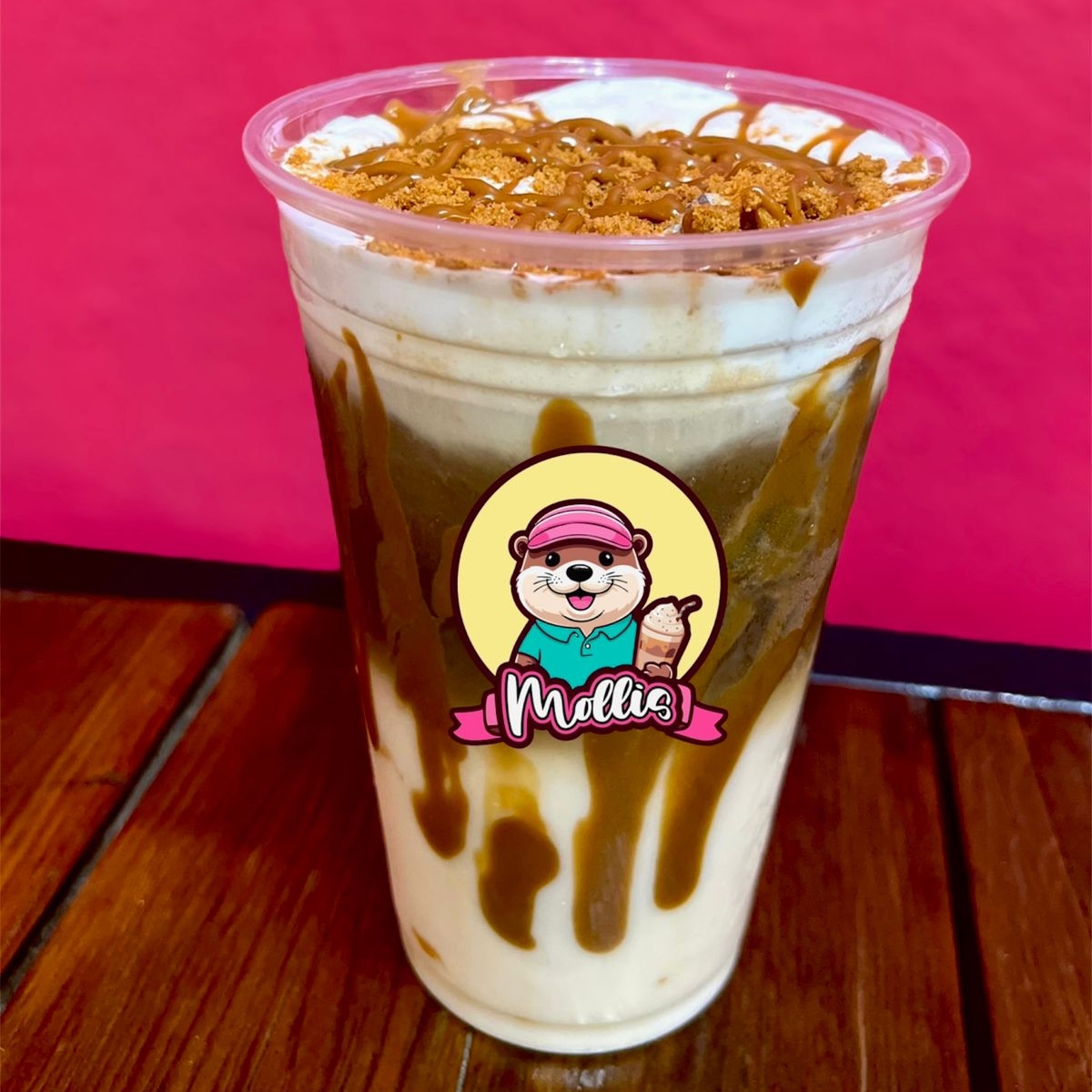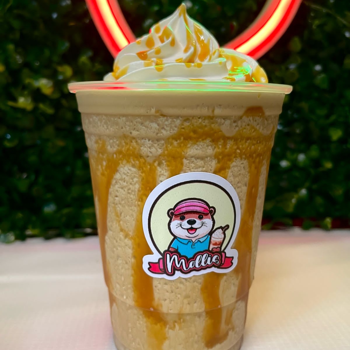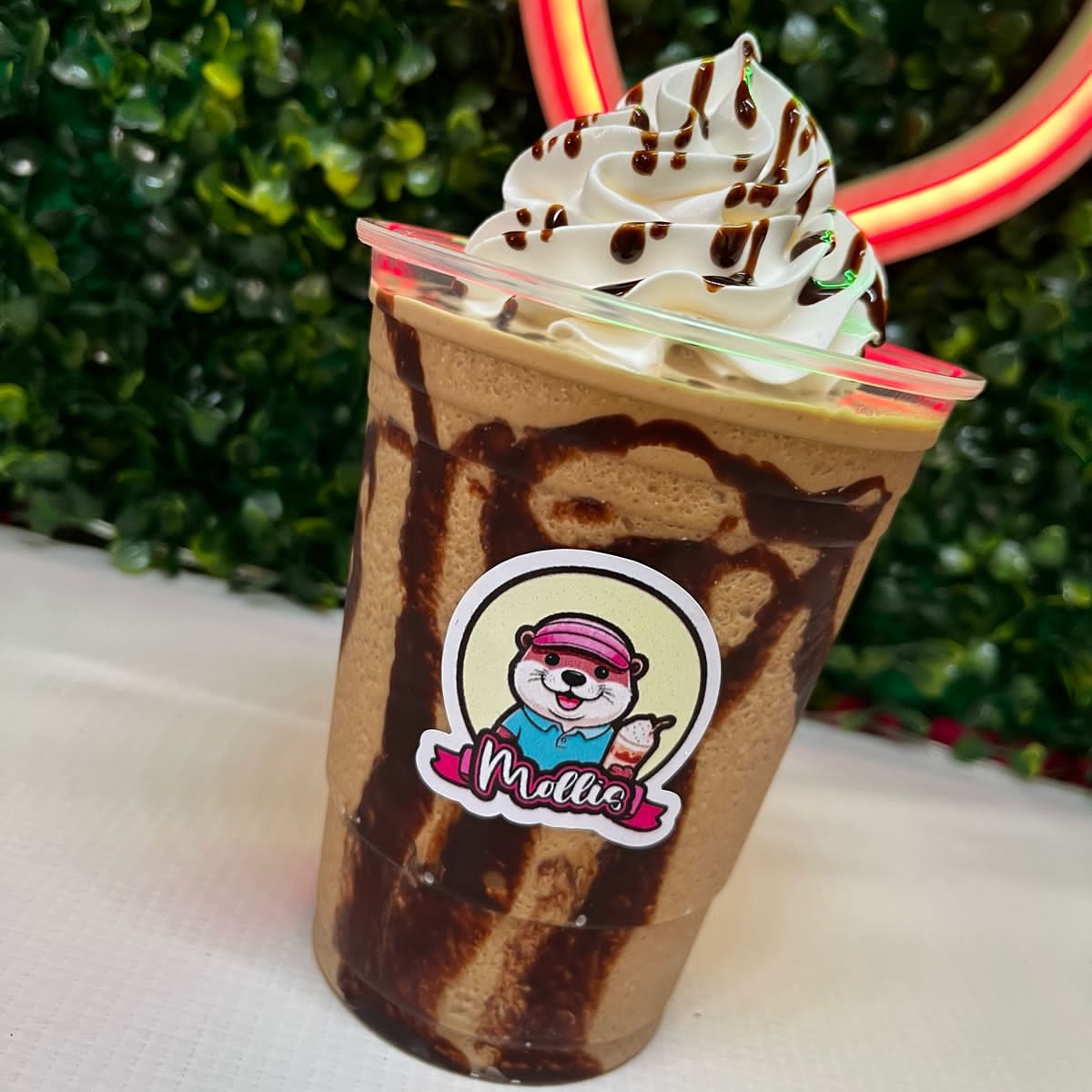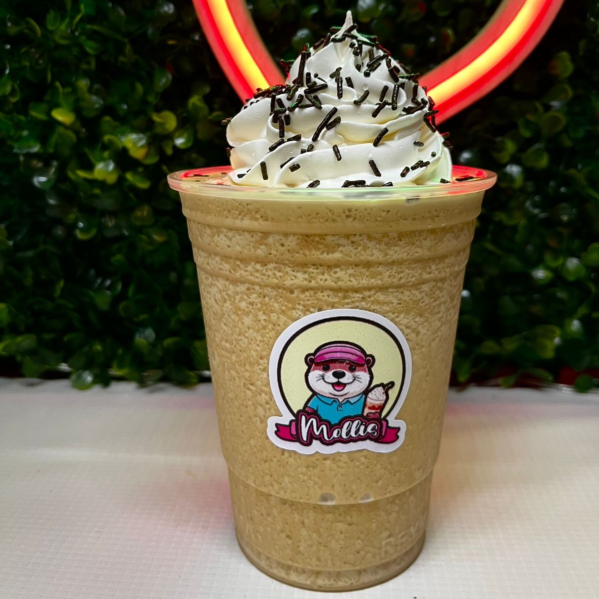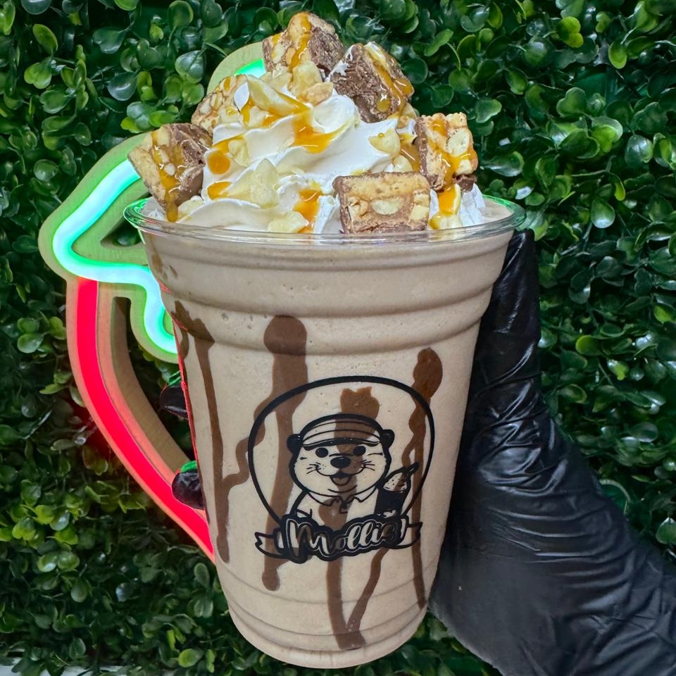 Deliciosa malteada de 16oz, sabor moka, presentada con crema batida y decoración.