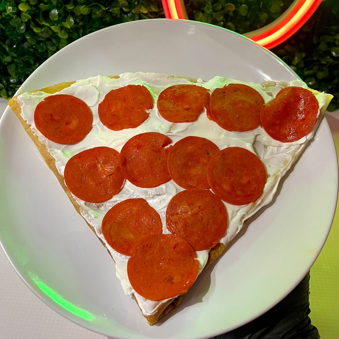 Crepa de 40 cm, masa de la casa con queso Philadelphia y Peperoni.
