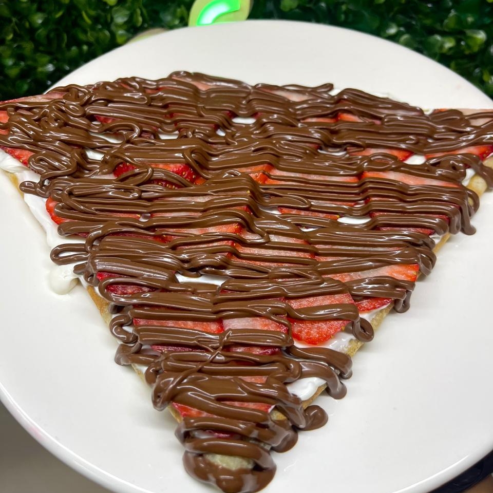 Crepa de 40 cm, masa de la casa con queso Philadelphia, fresa fresca y Nutella.