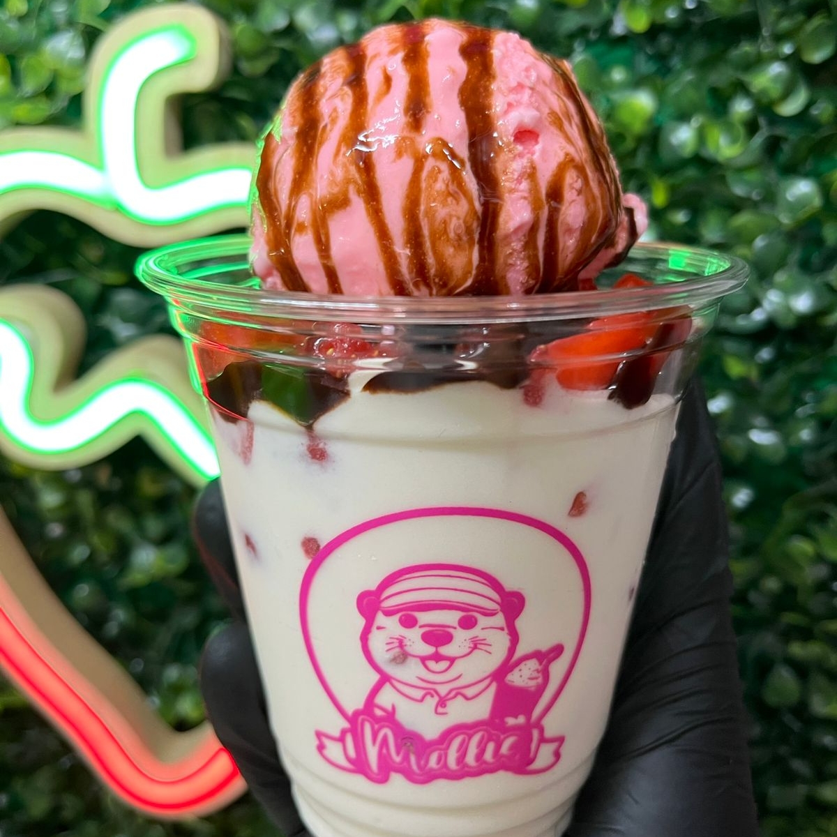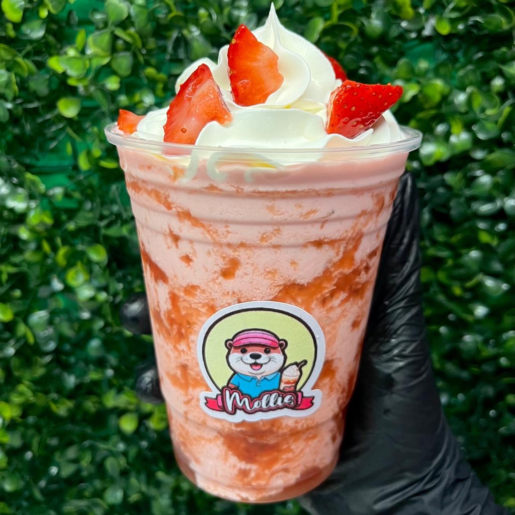 Elaboradas con fresa 100% natural bien fria con crema preparada receta especial de la casa, con helado de su preferencia y 1 topping líquido, en vaso de 12 oz.