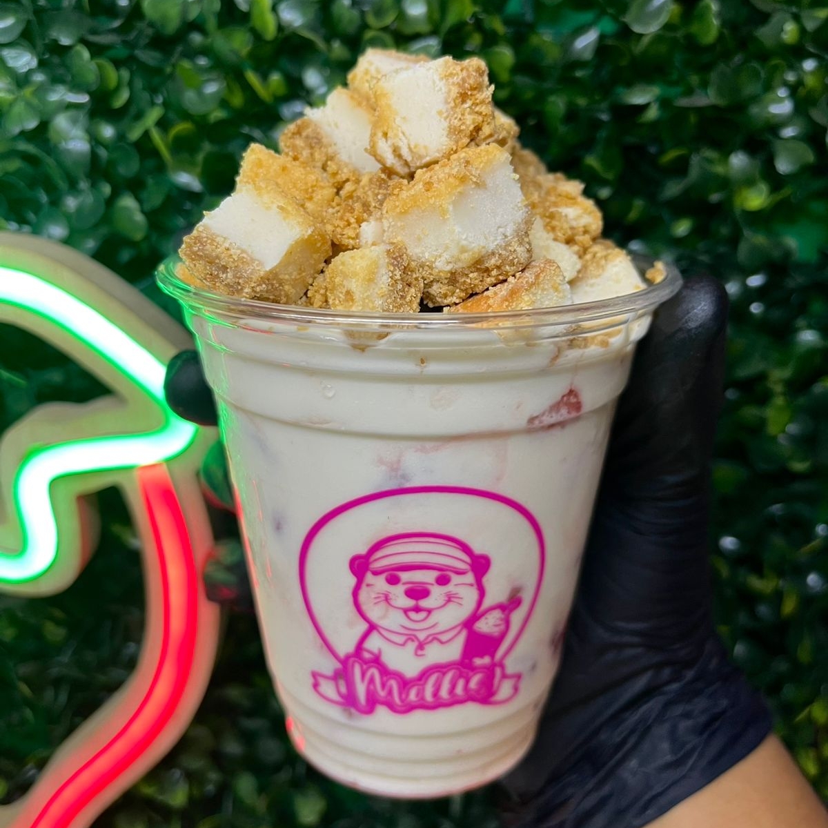 Deliciosa malteada de 16 oz sabor Mazapán, presentada con crema batida y decoración.