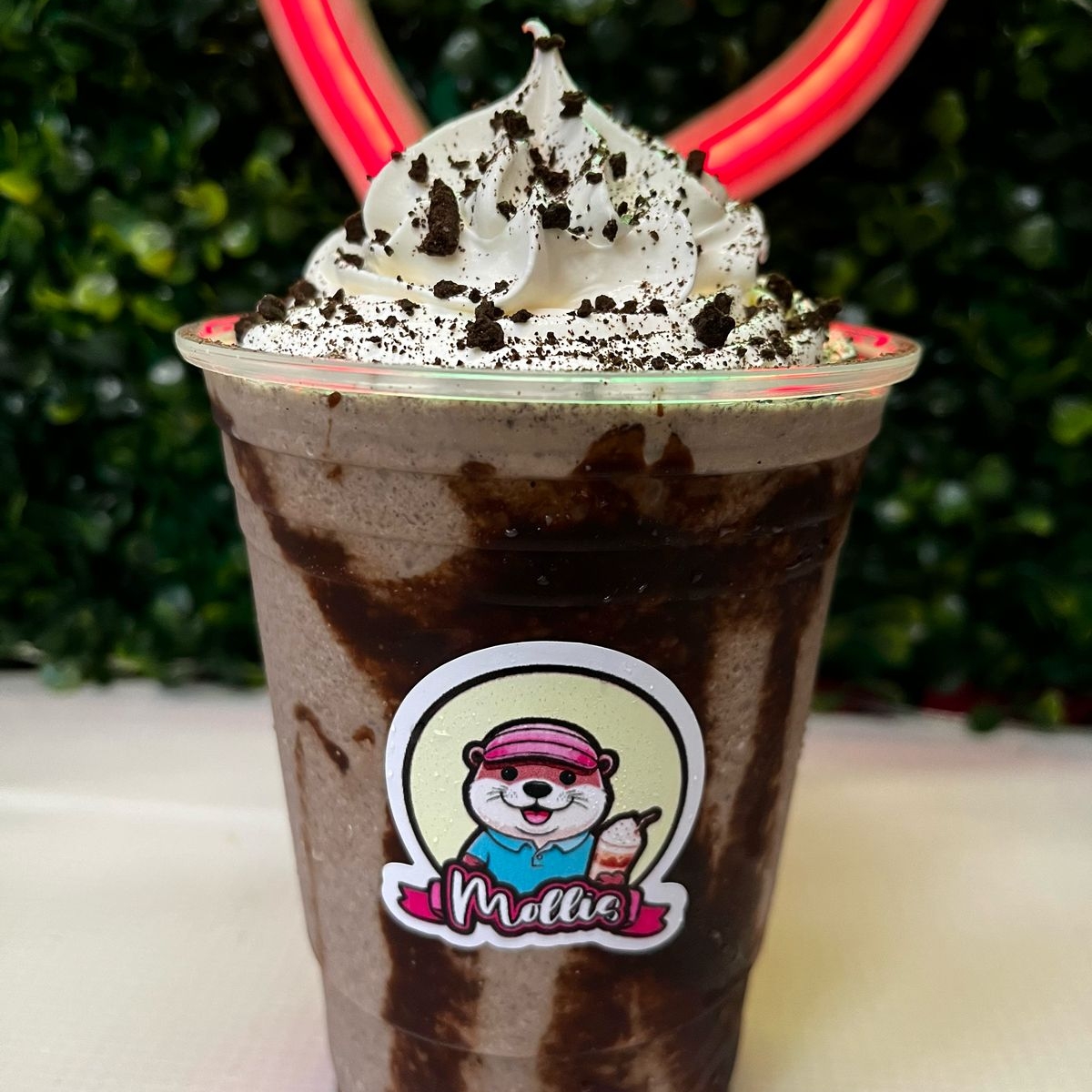 Deliciosa malteada de 16 oz, sabor galleta Oreo, presentada con crema batida y decoración.