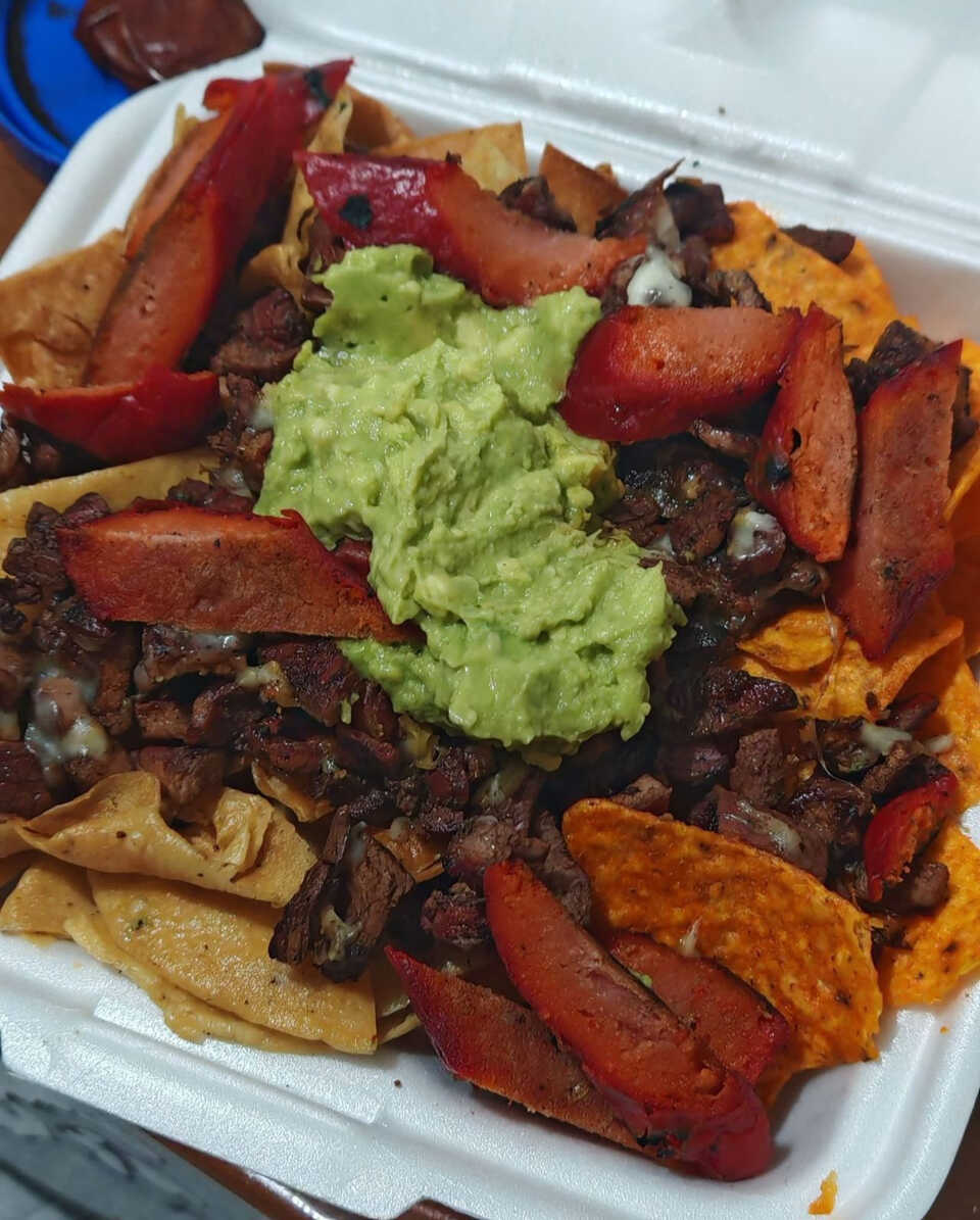 Botana de doritos preparados con el toque especial de carne y complementos de Mr. Parrilla.