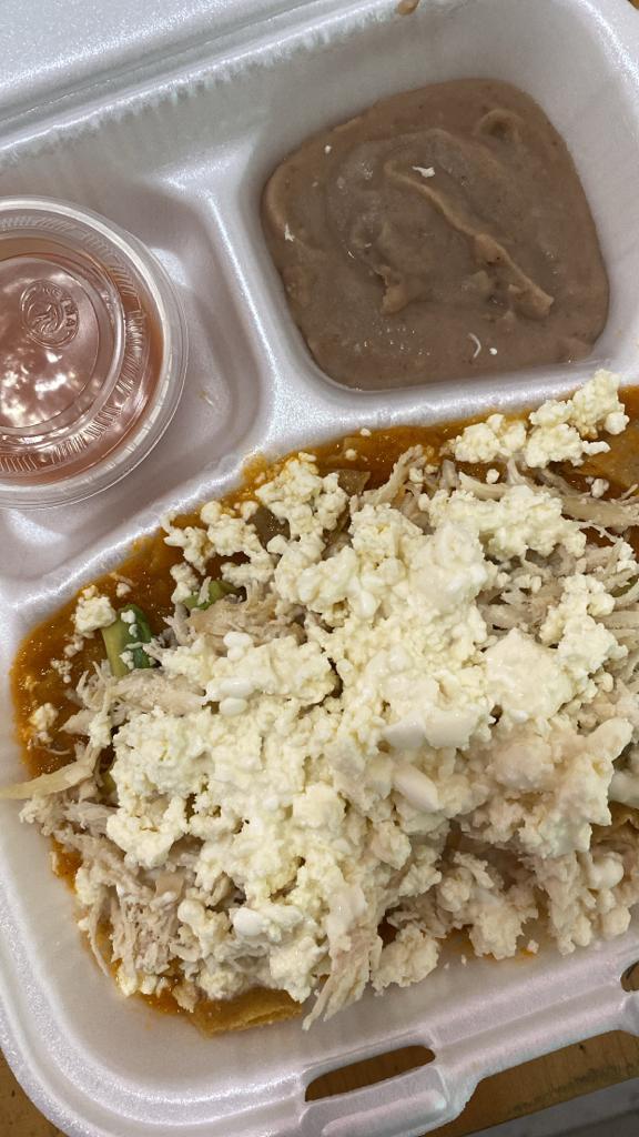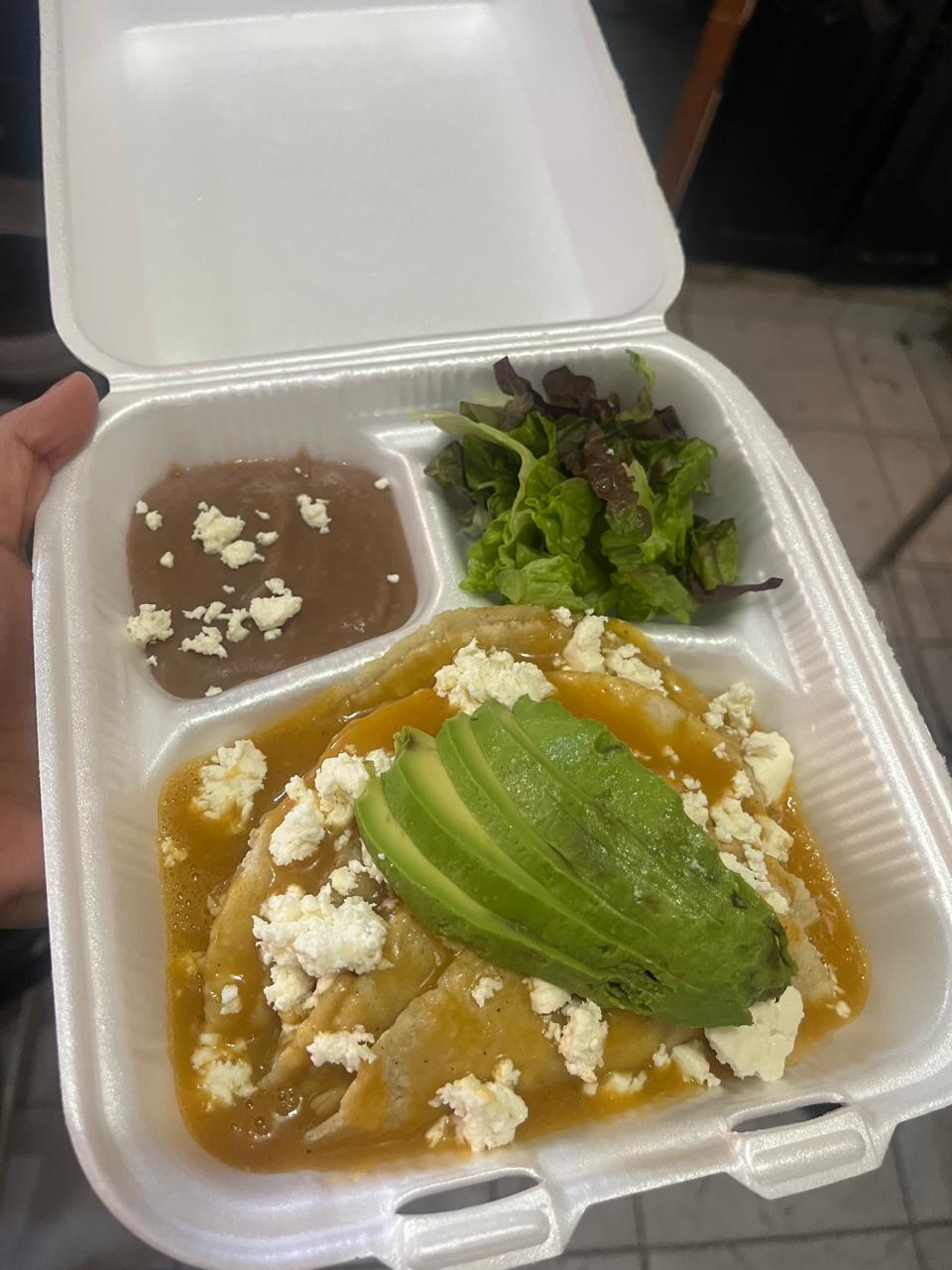 3 Piezas. Salsa de tu elección, rellenas de pollo o huevo, acompañadas de crema y queso panela.