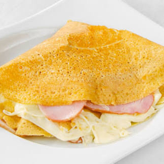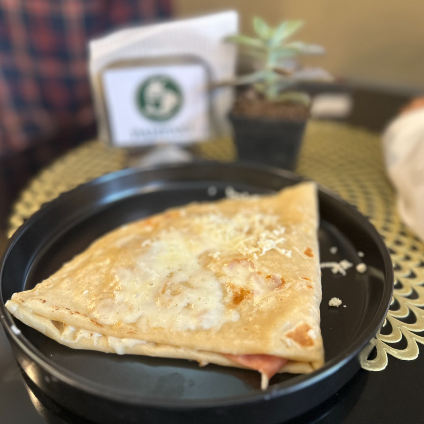 Deliciosa crepa acompañada de peperoni y queso manchego