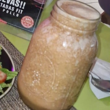 1 Litro de té chai flamingo frappeado con 1 scoop de proteína de chocolate.