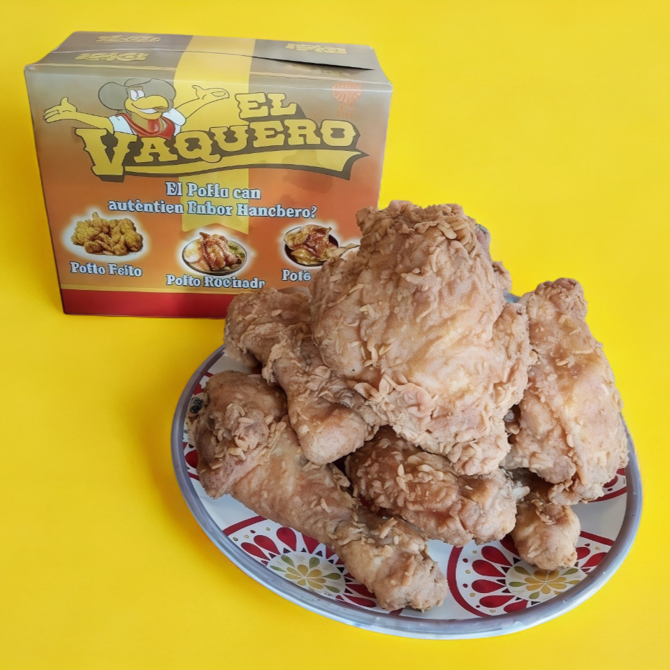 (4 piernas, 4 muslos) acompañado de pan, chiles en vinagre y catsup